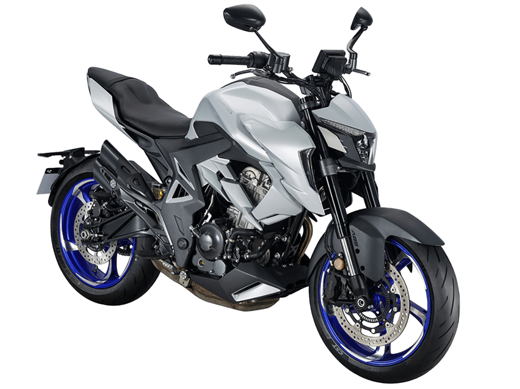 Мотоцикл ZONTES ZT350-R – современный нейкед со стремительным и дерзким дизайном. Хорошо подходит как для поездок в городской среде и маневрирования в межрядье.Силовая установка представлена одноцилиндровым 4-тактным двигателем ZT184MP с 4 клапанами и 2 верхними распредвалами. Двигатель имеет объём 348 см³ и обеспечивает мощность в 39 л.с. Оснащён инжектором BOSCH и системой жидкостного охлаждения. Механическая коробка передач имеет 6 ступеней и схему 1-N-2-3-4-5-6. Запуск двигателя осуществляется с помощью бесключевого доступа.Ёмкость топливного бака 15 литров.Колёса представлены литыми алюминиевыми дисками диаметром 17 дюймов. На мотоцикл установлены датчики давления в шинах, показатели от которых выводятся на приборную панель. Для подвески спереди используется телескопическая вилка, сзади – моноамортизатор. Гидравлические дисковые тормоза произведены испанской компанией J.JUAN, входящей в холдинг BREMBO.Для освещения используется яркая LED-оптика, а приборная панель представлена цифровым дисплеем. Имеется 2 USB-порта.Габариты мотоцикла 2030х795х1120 мм. Колёсная база 1390 мм. Высота по седлу 795 мм. Вес 165 кг.Комплектация и внешний вид мотоцикла могут отличаться в зависимости от поставки. Изображение на сайте не гарантирует наличие тех или иных опций. Уточняйте информацию при оформлении заказа.