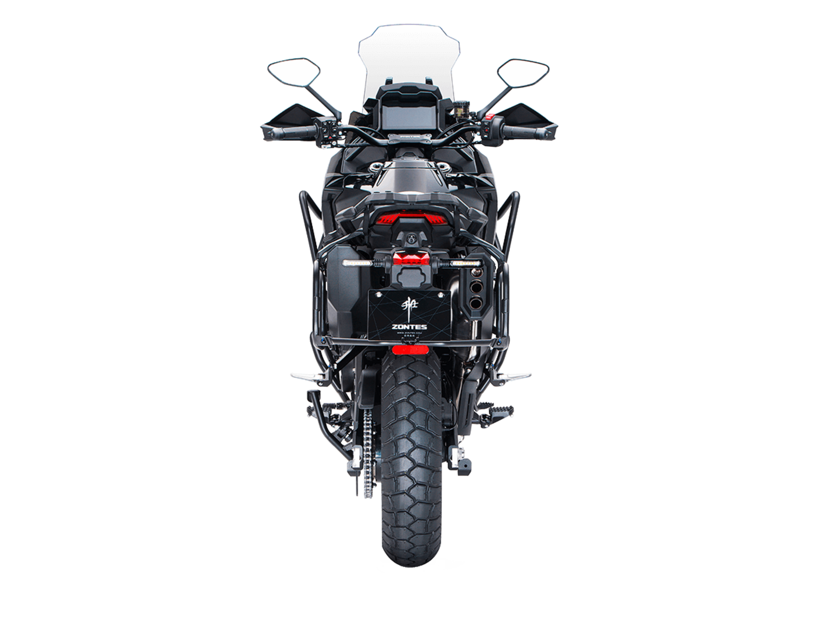 Мотоцикл ZONTES ZT703-F Tour 21/18 2025 – универсальный турэндуро, который подойдёт как для городских поездок, так и динамичных прохватов по грунту благодаря производительной подвеске. Узнайте, что такое настоящее наслаждение путешествием!Силовая установка представлена 3-цилиндровым 4-тактным двигателем объёмом 699 см³ с 4 клапанами на каждом цилиндре и 2 верхними распредвалами. Двигатель способен развивать мощность до 97,2 л.с. при 10 000 об/мин и высокий крутящий момент 76 Н·м при 7500 об/мин, что позволяет развивать большую скорость и с лёгкостью преодолевать трассы со сложным рельефом. Соотношение диаметра цилиндра и хода поршня 70х60,6 мм. Степень сжатия 13:1. Может работать в 2 режимах: ECO и SPORT. Запуск двигателя осуществляется с помощью бесключевого доступа. Установлена алюминиевая защита.Жидкостная система охлаждения эффективно поддерживает оптимальную температуру двигателя. На мотоцикл установлена 6-ступенчатая коробка передач, оснащённая квик-шифтером для переключения передач без использования рычага сцепления.В конструкции мотоцикла используется пространственная алюминиевая рама. Спереди и по бокам картера установлена металлическая защита двигателя. Выхлопная система оснащена стильным глушителем. Ёмкость топливного бака 22 литра.На мотоцикл установлены спицованные бескамерные колёса диаметром 19 дюймов спереди и 17 дюймов сзади. Подвеска изготовлена итальянским производителем MARZOCCHI. Спереди используется телескопическая вилка перевёрнутого типа с ходом 180 мм. Сзади установлен моноамортизатор с ходом 180 мм. Оба компонента регулируются.Дисковые гидравлические тормоза произведены компанией J.JUAN, входящей в холдинг BREMBO. Спереди используется двойной диск 310 мм с 4-поршневыми суппортами, а на заднем колесе расположен диск 260 мм с однопоршневым суппортом. Мотоцикл также оснащён 2-канальной ABS-системой с возможностью отключения, а также настраиваемой противобуксовочной системой.На мотоцикле используется яркая LED-оптика с дополнительным светом и многофункциональная приборная TFT-панель, положение которой можно регулировать. Рычаги тормоза и сцепления можно регулировать. Руль оснащён функцией подогрева и защитой рук. Спереди и сзади установлены видеорегистраторы. Мотоцикл оснащён датчиками давления в шинах. Ветровое стекло имеет электронную регулировку и настраивается через кнопки на руле. Имеется 2 USB-порта. Вещи можно перевозить в багажном отсеке, или присоединить кофры для перевозки: имеется площадка для установки центрального кофра и крепления для боковых кофров. Мотоцикл поставляется с центральной подножкой в комплекте.Габариты мотоцикла 2355x940x1395 мм. Колёсная база 1550 мм. Высота по седлу 830 мм. Вес 228 кг.Комплектация и внешний вид мотоцикла могут отличаться в зависимости от поставки. Изображение на сайте не гарантирует наличие тех или иных опций. Уточняйте информацию при оформлении заказа.
