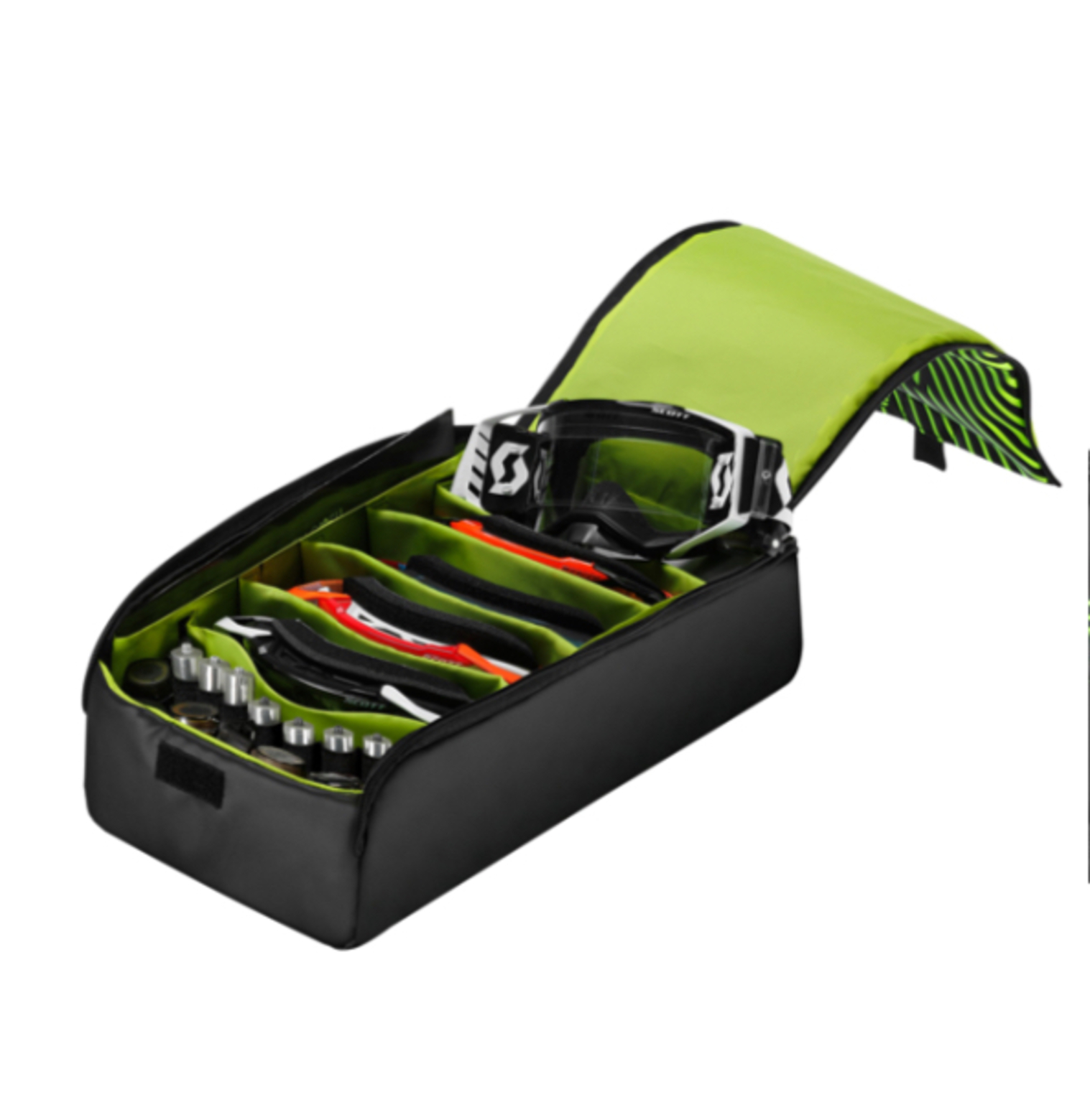 Чехол идеально подходит для хранения нескольких пар очков, нескольких линз и любых других предметов, связанных с очками, необходимых для гоночного дня. Один размер и легко носить с собой!Особенности:• Можно вместить до 5 пар защитных очков с индивидуальной защитой от скатывания;• Карман для хранения объектива;• Сверните компартимент системы для хранения и защиты канистр, пленки, брызговиков.