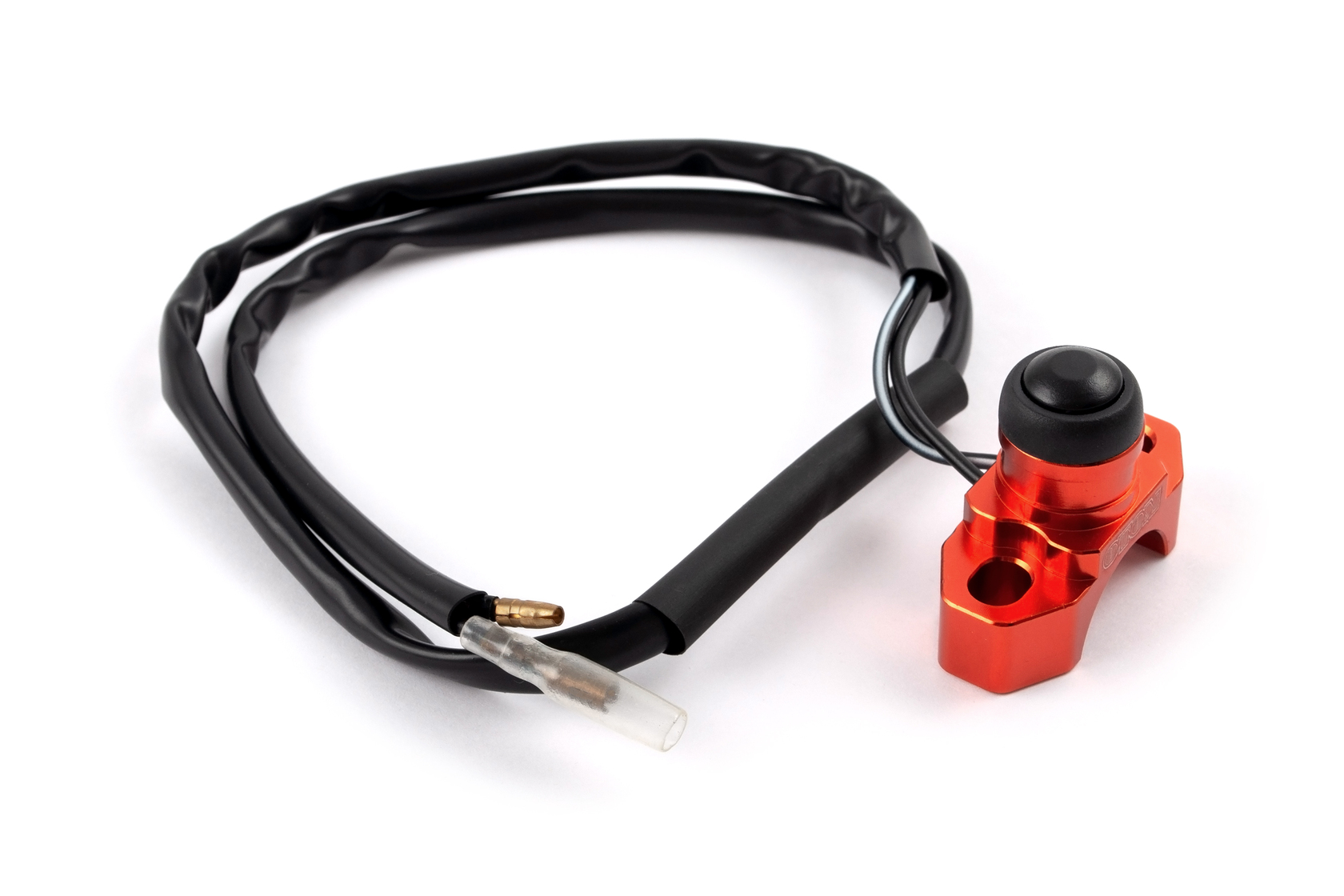 Универсальная кнопка запуска и остановки двигателя OTOM оранжевого цвета. Выполняет функции включения или выключения двигателя в зависимости от схемы подключения. Корпус изготовлен из CNC алюминия с оранжевым покрытием, обеспечивает надежную влагозащиту. Стандартное крепление двумя болтами вместо штатного рычага сцепления или тормозной машинки. Подходит для установки как с левой, так и с правой стороны руля.