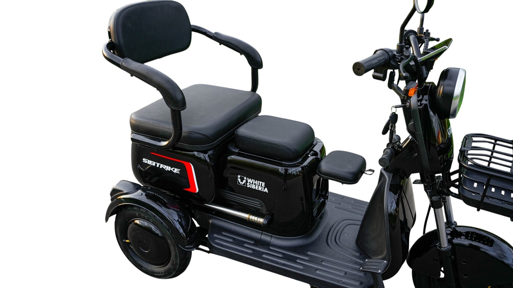 Пассажирский электрический трицикл-трансформер SIBTRIKE 2000WДанная модель рассчитана на взрослых райдеров, у которых есть дети. Поистине универсальный транспорт! Большое удобное сидение создано для продолжительных поездок. Есть откидное детское сидение и две корзинки - спереди и сзади. Аппарат подойдёт для поездок по территориям Российских санаториев, парков и набережных.Что же отличает SIBTRIKE 2000W от конкурентов?Универсальная конструкция для выполнения широкого спектра задач;Откидное детское сидение;Возможность ездить втроём – 2 взрослых места + детское сидение;Аккумулятор Li-ion 60V 21A с балансиром, запас хода до 45 км;Удобен для парков и коттеджных посёлков;Редукторный мотор с дифференциалом, что не даёт опрокидываться трициклу;Отличная тяга в гору;LED оптика;Колёса 10 дюймов.Электромотоцикл SIBTRIKE 2000W – отличный помощник для решения широкого спектра задач в санаториях, на территориях отелей, парков и набережных.Замена масла: 0,5 литра трансмиссионное GL-4 80W90Первая замена 350км, вторая 1000км, далее каждые 1500км