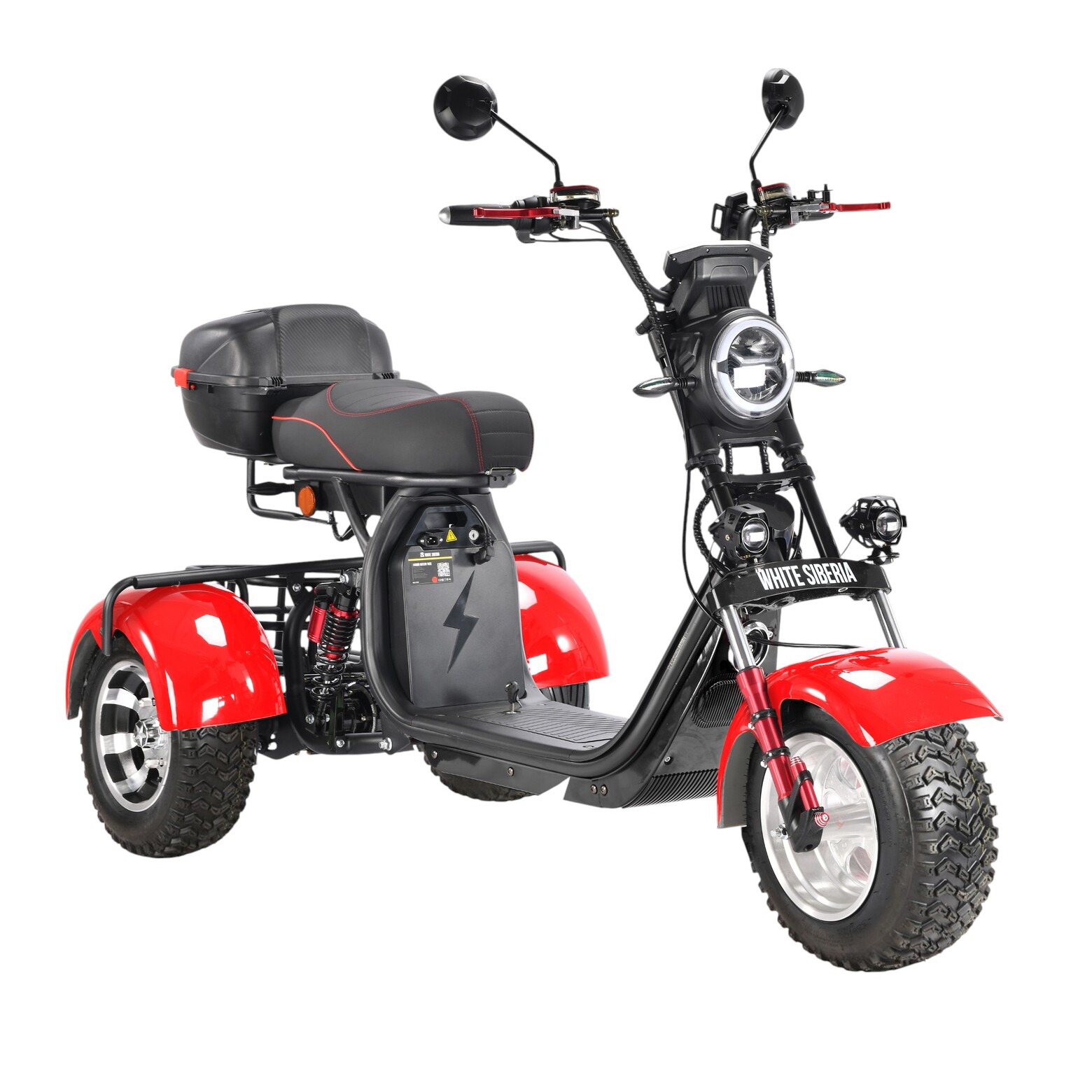 Главная ... Электротехника Электротрицикл WHITE SIBERIA PRO TRIKE 3000W RED (колёса allroad)