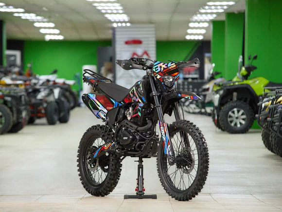 Комплектация Руль 28мм. Короткоходная ручка газа. Цепь 520. Алюминиевая лапка КПП, боковые накладки на рамы. Счетчик моточасов, приборная панель. Стоп сигнал, Грипсы Lock on, Пластиковая защита радиатора,