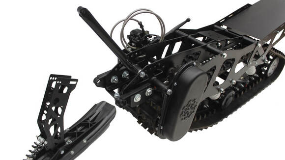 Alum.Данная комплектация собирается на базе Максимальной, но часть компонентов производится из алюминия. При этом часть высоконагруженных деталей остается из стали (рельс, рычаг, стойка лыжи, валы, рама). Это позволяет значительно снизить вес комплекта, а также, избавиться от потенциальной ржавчины.