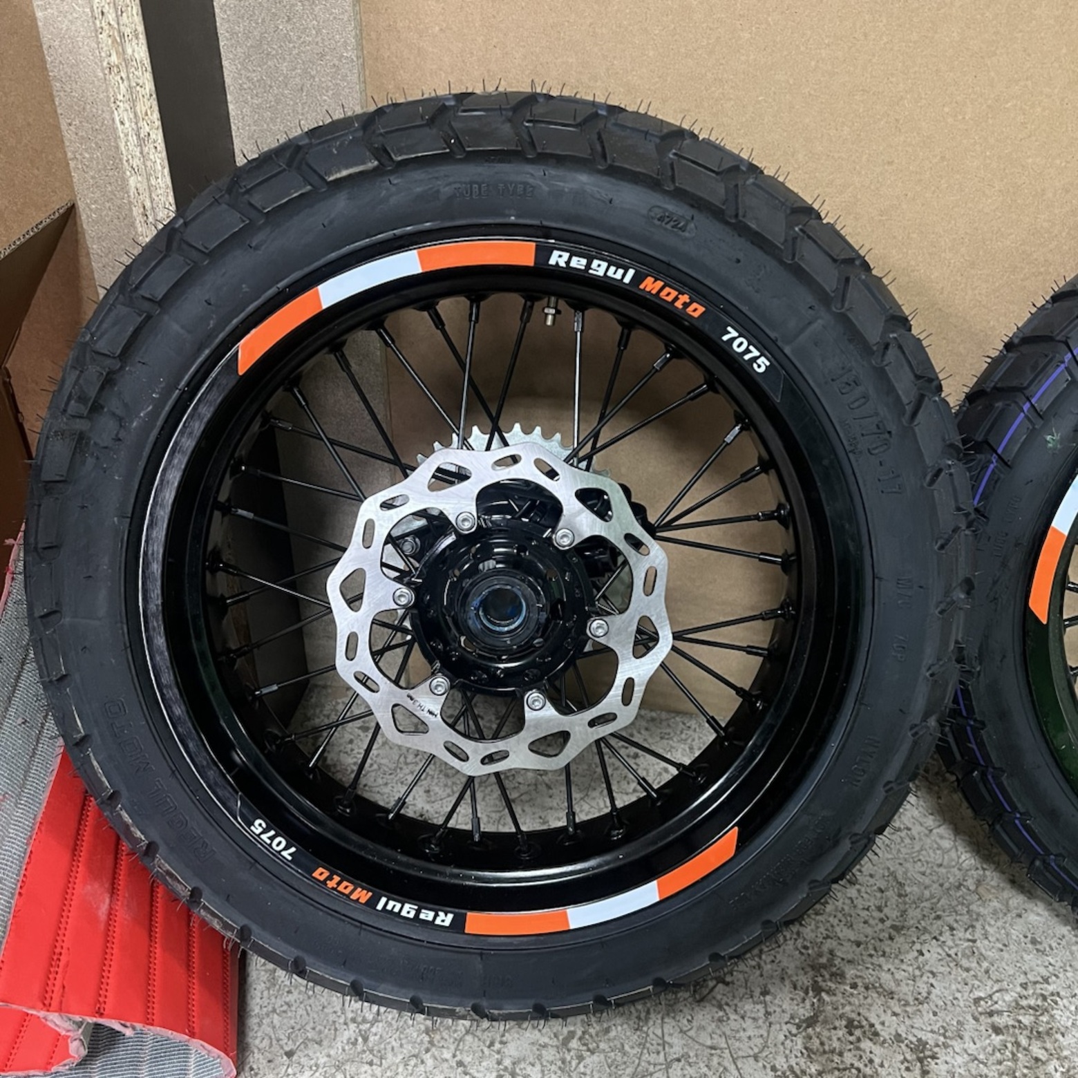 Обновите внешний вид и управляемость своего KTM — с этими колесами ваш мотоцикл приобретает спортивный и агрессивный облик мотарда, становится более отзывчивым и заметным на дороге! Готовое решение для максимального удовольствия от езды.