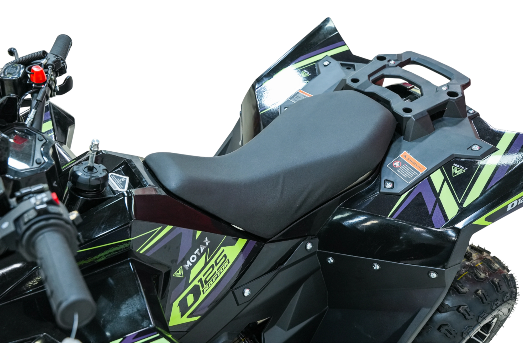 Квадроцикл бензиновый MOTAX GRIZLIK D125 RAPTOR LUX для детей и подростков. Квадроцикл оборудован 125 кубовым, мощностью 10 л.с., четырехтактным двигателем. Развивает скорость до 55 км/ч, выдерживает нагрузку до 100 кг.