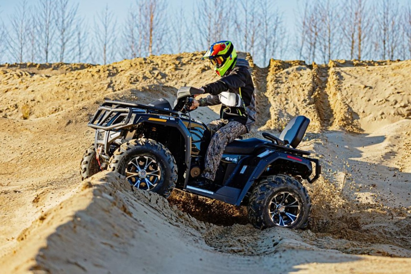 Квадроцикл HISUN TACTIC 750 LIMITED — многофункциональный вездеход с автомобильным рулевым управлением и посадкой. Разработан для эксплуатации в тяжелых условиях бездорожья. Укомплектован стальной сварной трубчатой рамой, пластиковыми обвесами с расширителями арок, передней лебедкой, двумя вместительными багажниками весом до 55 кг. Незаменим для походного туризма. Яркие LED – фары отлично освещают дорогу и гарантируют безопасность передвижения в темное время суток. Крупный протектор колес даст хорошее сцепление с грунтом. Продуманная эргономика обеспечивает высокий комфорт как для водителя, так и для пассажира, а вместительный бензобак на 17 литров и небольшой расход топлива позволит увеличить расстояния Ваших путешествий.