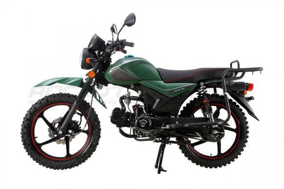 Regulmoto Alpha (RM-1) 110сс – «живая классика» китайской мотоиндустрии, один из самых доступных представителей двухколесного транспорта утилитарного назначения. Новое поколение Alpha готово продемонстрировать улучшенные показатели производительности, высокую надежность в повседневной эксплуатации и традиционную неприхотливость в сервисном обслуживании. Данный мопед комплектуется надежным «кабовским» двигателем – одноцилиндровым 4-тактником воздушного охлаждения с 4-ступенчатой трансмиссией. Рабочий объем мотора увеличен до 110 см3 благодаря установке нового комплекта ЦПГ на заводе-изготовителе. Запуск двигателя возможно осуществить как при помощи кнопки электрострартера, так и при помощи рычага традиционного кик-стартера. Увеличение рабочего объема мотора заметно сказывается как на максимальной развиваемой мощности, которая составляет чуть больше семи лошадиных сил, так и на эксплуатационных характеристиках техники.Среди других усовершенствований комплектации обновленного Regulmoto Alpha (RM-1) следует отметить более мощные передние амортизаторы (диаметр до 28 миллиметров), усиленные тросы переднего тормоза и сцепления, современную светодиодную лампу в фаре головного света. Кроме того, на Regulmoto Alpha (RM-1) установлен полный комплект светотехники, зеркала заднего вида, аналоговая приборная панель, на которой отображаются пробег, скорость, выбранная передача, обороты двигателя, индикаторы работы поворотников и фары. Также имеются подножки для пассажира, багажный кофр, кожух защиты цепи и дуги безопасности.Владелец новенького Regulmoto Alpha (RM-1) по достоинству оценит экономичный двигатель, высокую надежность конструктивных решений и доступную стоимость сервисного обслуживания техники. Мопед полностью готов к комфортному использованию на дорогах города и проселках пригорода и способен успешно справляться с широким кругом эксплуатационных задач.