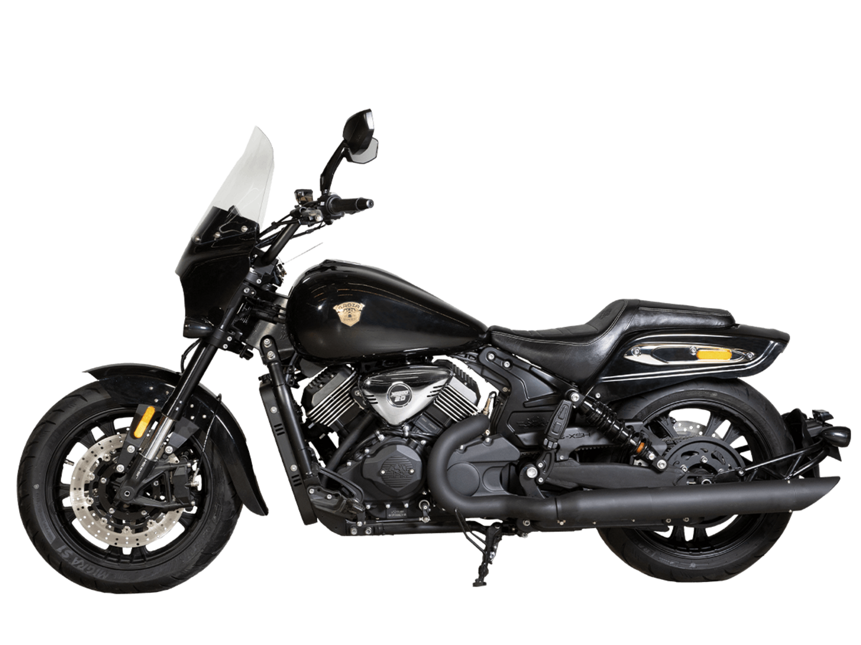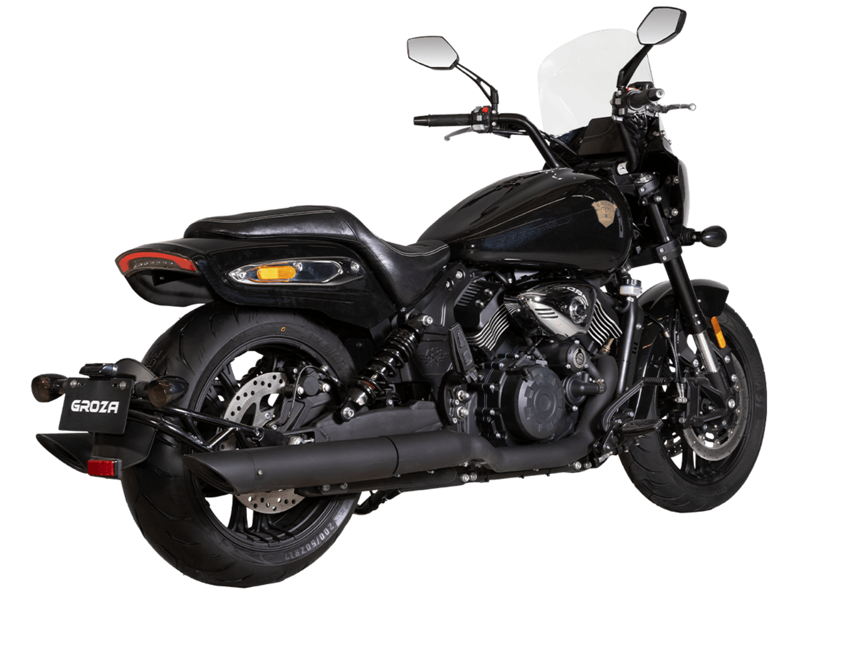 GROZA RL800 – шикарный круизёр, который подойдёт как для повседневной городской езды, так и для комфортного перемещения на длинные дистанции. Его дизайн исполнен в классическом стиле, соответствующем всем канонам данного типа мотоциклов.Двухцилиндровый V-образный двигатель объёмом 800 см3 мощностью 61 л.с. при высоких показателях динамики и отличном крутящем моменте способен разгонять аппарат до 160 км/ч. Инжекторный впрыск топлива с инжектором DELPHI увеличивает топливную экономичность, а также позволяет добиться высокой приёмистости и неприхотливости агрегата. Привод на ведущее колесо осуществляется ремнём знаменитой марки USA Gates. Жидкостная система охлаждения не допустит перегрева мотора даже при самом агрессивном вождении.RL800 имеет 6-ступенчатую механическую коробку передач с классической схемой “1-N-2-3-4-5-6”. На мотоцикл установлены литые алюминиевые диски диаметром 17 дюймов. Ширина передней покрышки – 140 мм, задней – 200 мм. С неровностями дороги эффективно справляются телескопическая вилка перевёрнутого типа спереди и маятник с двумя газонаполненными амортизаторами сзади. Подвеска имеет 7 ступеней регулировки, что обеспечивает лёгкую перестройку на различные режимы езды. Для всего класса круизёров такая опция – большая редкость. Эффективное и безопасное замедление с любых скоростей обеспечивают гидравлические дисковые тормоза спереди и сзади от компании NISSIN.Аппарат оснащён своеобразной и очень привлекательной по дизайну светодиодной оптикой, а также бортовым компьютером и ярким и информативным дисплеем.Мотоцикл сочетает в себе отличные технические характеристики, богатое оснащение, комфорт и надёжность, что позволяет вам ощутить настоящую свободу на любой дороге.