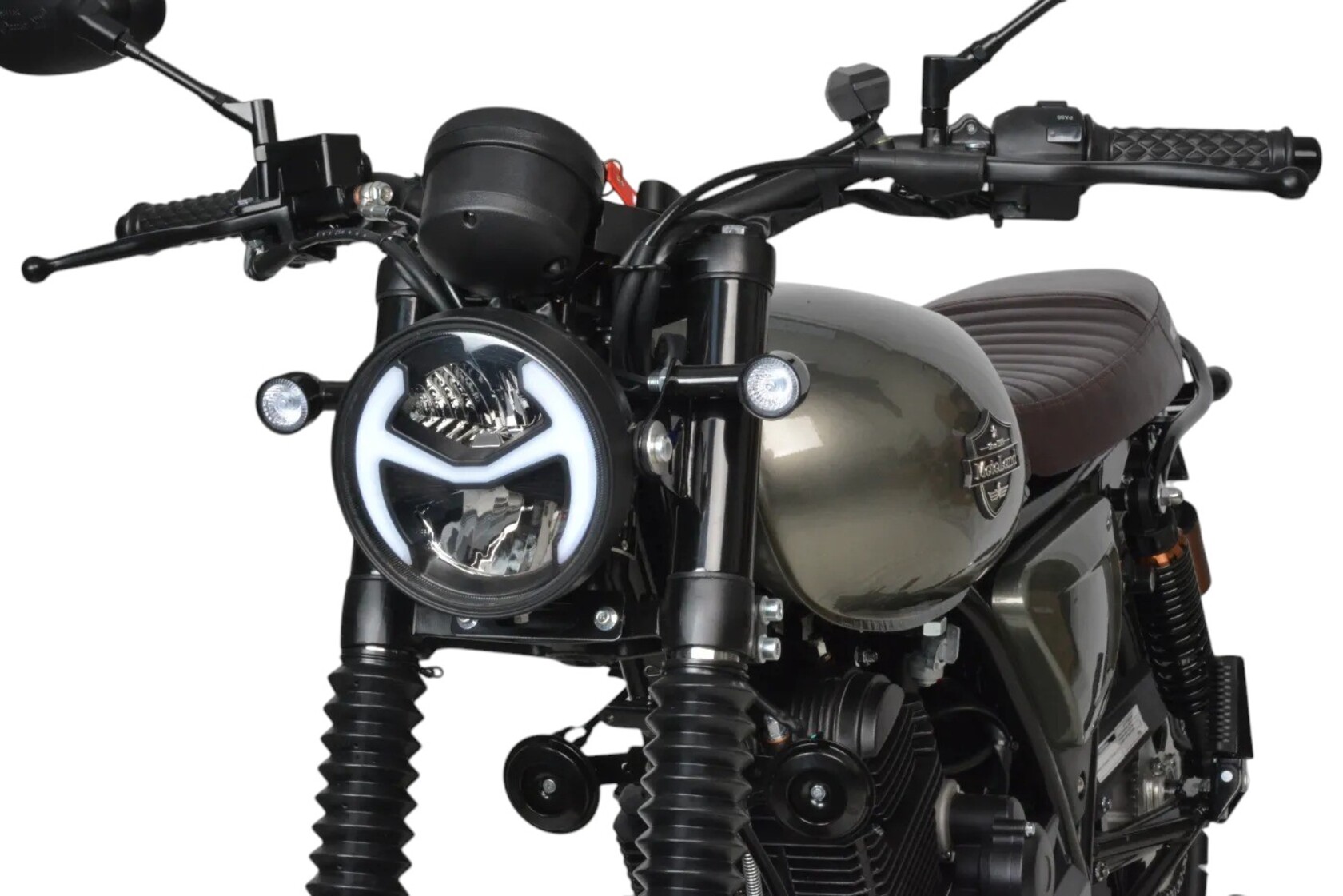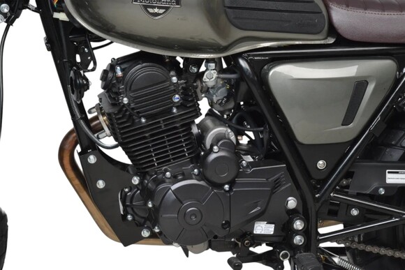 TEXAS 300 PRO. Дизайн мотоцикла выполнен в ретро стиле, укомплектованный обновленная LED-фарой, приборной панелью, USB-зарядкой, креплением номерного знака, резиновыми накладками на бак, обновленным глушителем из нержавеющей стали и прочими канонами современности. Классическая посадка, мягкое кожаное сиденье и литые колеса – всё это способствует комфортному управлению по асфальтированным дорогам и пересеченной местности.Мотоцикл оснащен двигателем 175FMN (баланс. вал), с 6 ступенчатой КПП, мощностью 25 л.с. Установлен усиленный толстостенный руль.Ходовая часть состоит из телескопической длинноходной вилки и задними амортизаторами с расширительными бачками.Топливный бак в 11 литров и экономичный мотор с расходом в 2,5 л./100км. Позволяют проезжать более 400 километров без дозаправки.Вес мотоцикла / вес в коробке 133 кг / 158 кг