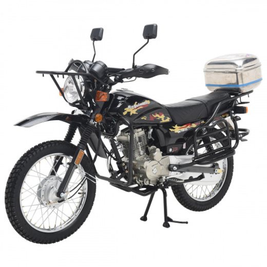 Комплектация Тормоза барабанные, цепь 428Н, защита рук, клетка, кофр, зеркала заднего вида, центральная и боковая подножки.