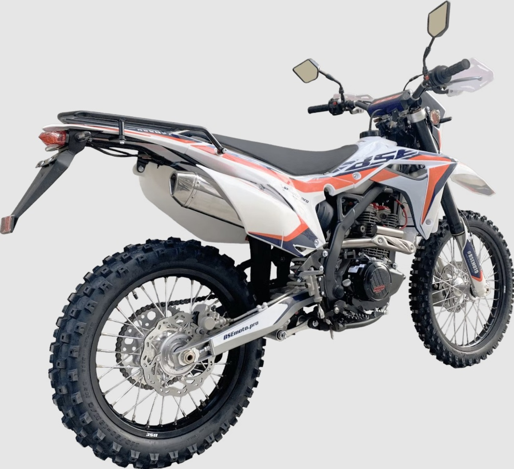 BSE Z6 Y - идеальный мотоцикл для долгих эндуро путешествий! Благодаря наличию дополнительного топливного бака на 4 литра, удобного сиденья и пассажирских подножек. Имеется возможность закрепить поклажу на задний багажник.BSE Z6 Y комплектуется всем необходимым для передвижения по асфальту: возможность постановки на учет, электростартер, яркая LED фара головного света и задний стоп сигнал, наличие поворотников и зеркал заднего вида, широкий спортивный алюминиевый руль. Благодаря ЖК приборной панели вы всегда будете знать о всех главных параметрах мотоцикла. Мощная гидравлическая тормозная система HSК Racing остановит байк в любых условиях.Z6 Y - идеально сбалансированный, устойчивый, мощный эндуро мотоцикл на прочнейшей усиленной стальной раме. Сердце Z6 Y– мощный, эластичный и надежный 250 кубовый Zongshen ZS 172 FMM мощностью 21 лс. Система подачи топлива – проверенный карбюратор Nibbi 28.Крепкий, надёжный и неприхотливый BSE Z6 Y обладает всеми качествами настоящего эндуро. Подойдёт, как и для среднего уровня катания, так и для продвинутого райдера. Z6 Y оснащается регулируемой подвеской MOJO Racing c большими ходами, рычагам задней прогрессии и вилкой “перевертышем”. Алюминиевые колёсные диски с буксаторами, внедорожная резина, усиленная цепь, датчик моточасов, защита рук – ваши возможности на бездорожье безграничны!Наслаждайтесь преимуществами BSE Z6 Y на любых покрытиях.