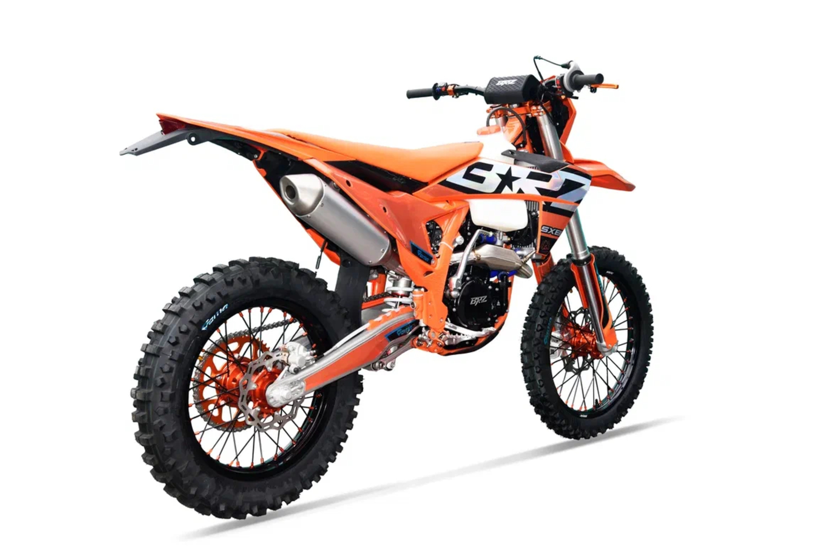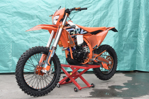 • Размер и тип колес – 21х18 обода алюминиевые, ККЕ, сплав 7 серии. Фрезерованные ступицы. Передние покрышки GEMA F-ENDURO 90/90-21, задние GEMA EX SUPER SOFT 140/80-18.