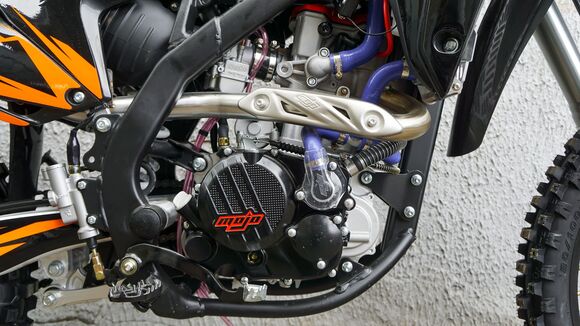 Комплектация Руль 28мм. Короткоходная ручка газа. Цепь 520. Алюминиевая литая лапка КПП, боковые накладки на рамы. Счетчик моточасов, приборная панель. Стоп сигнал, Грипсы Lock on, Защита рук Алюминиевая с пластиковыми щитками, Пластиковая защита радиатора.