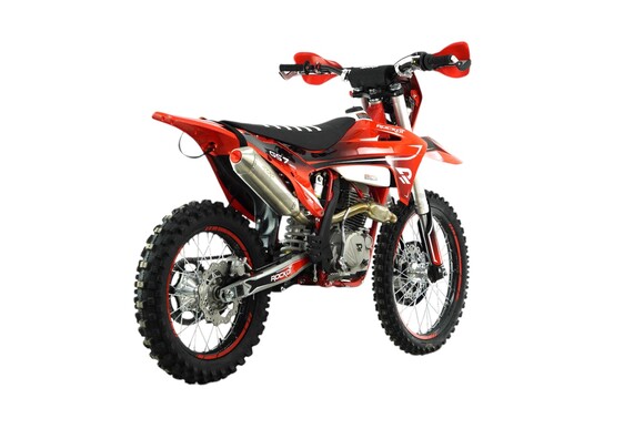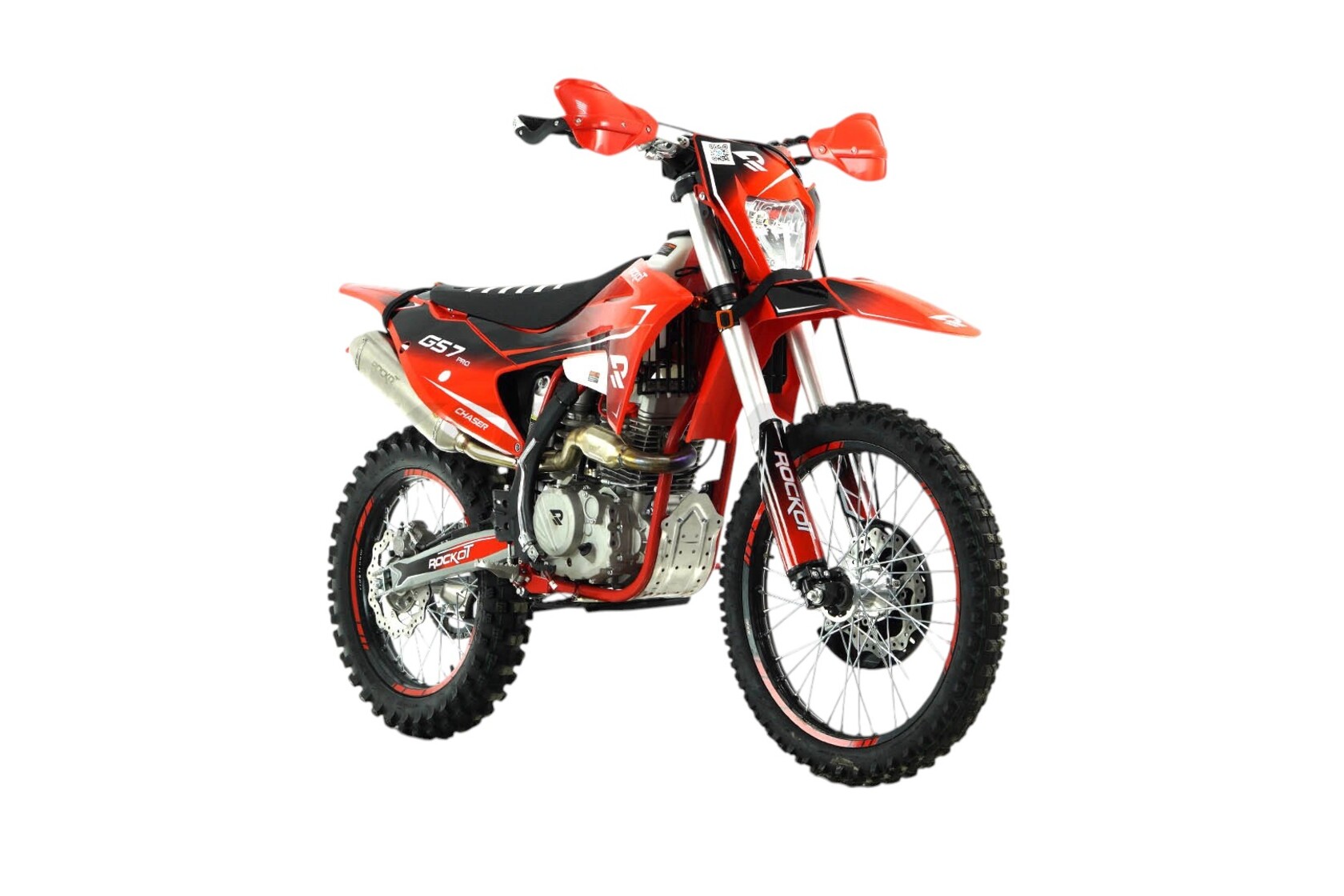 ROCKOT GS7 PRO Chaser - новинка в линейке мотоциклов GS от компании ROCKOT. Этот мотоцикл позиционируется как среднеразмерный эндуро высшего сегмента, о чем говорит его богатая комплектация. На сегодняшний день, это первый среднеразмерный эндуро, построенный на раме типа S6 в паре с современным и мощным двигателем LONCIN YB300H LX176FMN, а также более производительной подвеской, в сравнении с другими среднеразмерниками, и алюминиевыми дисками фирмы KKE.Исходя из названия модели - “Chaser”, что переводится как - охотник/преследователь, мы можем сказать, что его имя полностью оправдано дизайном, в котором выполнен данный мотоцикл. Здесь преобладает сочетание красного и черного цветов, что в графике плавно переходят в виде градиента. Рама мотоцикла окрашена в яркий красный цвет, а колесные диски в насыщенный черный, что делает образ мотоцикла ярким и контрастным. Элементы подвески и двигатель - серебристого цвета. Это позволило сделать мотоцикл более легким в его визуальном восприятии. Из множества других мотоциклов этого класса его выделяет облицовочный пластик, корни которого ведут к среднеразмерным кроссовым мотоциклам GASGAS. Фара головного света позаимствована от мотоциклов в стилистике KTM. Также стоит отметить множество элементов тюнинга, которые вписываются в концепцию и дизайн мотоцикла - “охотника” за наградами и призовыми местами в различных эндуро гонках.ROCKOT GS7 PRO Chaser оснащен самым современным двигателем Loncin YB300H LX176FMN мощностью 24,5 лошадиные силы и 18 Nm крутящего момента, который распределен “ровной полкой” от низкого до высокого диапазона оборотов коленвала. Диаметр цилиндра составляет 76 мм, а ход поршня - 63 мм. Двигатель отлично работает на топливе АИ-92/АИ-95 благодаря низкой степени сжатия - 9:1. Данный двигатель имеет четырехклапанную систему газораспределения и один распредвал, чем и достигается такая высокая мощность в паре с плоскодроссельным карбюратором PWK34. Выхлопная система выполнена из нержавеющей стали. Для повышения крутящего момента на низких оборотах, в приемную трубу встроен резонатор “PowerBomb”, имеющий обновленную форму. Пятиступенчатая коробка передач имеет специально подобранное для эндуро передаточное соотношение и корзину сцепления с семью дисками увеличенного размера. Все это говорит о прямом назначении данного двигателя для эндуро. Немаловажной частью в конструкции двигателя является балансирный вал, который гасит вибрации двигателя и делает тренировки на мотоцикле максимально комфортными. Также двигатель обладает системой фильтрации моторного масла со сменным масляным фильтром.ROCKOT GS7 PRO Chaser построен на раме S6, в основе которой лежит профессиональная рама S8 полноразмерных эндуро мотоциклов GS серии. Несущая часть рамы, расположенная в передней верхней части, имеет увеличенное сечение, как и сам корпус рулевой колонки, что увеличивает диапазон применения различных амортизаторов вплоть до 940/48. Передняя нижняя часть рамы выполнена в виде двух труб восьмигранного сечения. Данное конструкторское решение сделало раму более легкой, но при этом очень прочной. Боковая часть рамы состоит из плоских труб с шестигранным сечением. Геометрия рамы разрабатывалась специально для езды в дисциплине эндуро и по сей день оправдывает свое предназначение.Спереди установлена телескопическая вилка перевернутого типа с увеличен