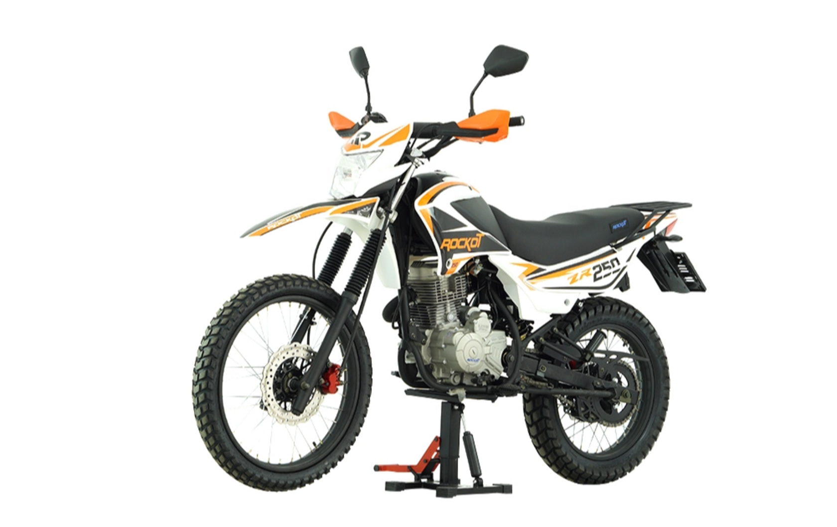 Представляем вашему вниманию новинку сезона 2024 года - бюджетный софт-эндуро мотоцикл ROCKOT ZR250.ZR250 - это полноценный эндуро мотоцикл с электронным ПТС, который был создан для повсеместной езды, будь то асфальтированные дороги общего пользования, грунтовые проселочные дороги и, конечно же, бездорожье. ROCKOT ZR250 выполнен по всем канонам софт-эндуро, а именно: прочный металлический бак, облицовка из мягкого ударопрочного пластика, широкое и комфортное сиденье для водителя и пассажира, а в задней части установлен стальной багажник. Мотоцикл производится в двух вариантах расцветки графики: черно-красной и черно-оранжевой.Дизайн мотоцикла ROCKOT ZR250 напоминает классический эндуро мотоцикл японского производства начала 2000-х годов. Именно эти байки послужили прообразом для создания бюджетного лайт-эндуро мотоцикла. Классическая вилка спереди, безлинковая подвеска сзади и колесная компоновка 21/18 - все это делает мотоцикл стильным, аутентичным, проходимым и доступным. ROCKOT ZR250 оснащен четырехтактным двигателем объемом 223 см³ и мощностью 16 лошадиных сил. Отличительная особенность этого двигателя от других “одноклассников” - это нижний распредвал и привод ГРМ штангами-толкателями. Данная конструкция двигателя является очень простой и надежной.Также, большим преимуществом газораспределительного механизма с приводом на толкателях, считается широкий диапазон крутящего момента во всех диапазонах вращения коленчатого вала.Система питания двигателя - карбюраторная, с высокопроизводительным карбюратором PZ30 с ускорительным насосом, который обеспечивает быстрый отклик на ручку газа, а также стабильную работу даже при холодном запуске. Обогатитель топливной смеси расположен на руле, что делает очень удобным первый запуск.Двигатель оснащен балансирным валом, снижающим уровень вибрации. Мотоцикл построен на прочной стальной раме, окрашенной в черный матовый цвет. Мотоцикл оборудован подножками для перевозки пассажира. Подрамник также выполнен из стали, к которому крепится металлический багажник, позволяющий перевозить грузы и установить центральный кофр.. Подвеска ROCKOT ZR250 типична для данного класса мотоциклов - софт-эндуро. Это классическая вилка спереди, длиной 840 мм, и моноамортизатор, длиной 300 мм, сзади. Система рычагов прогрессии отсутствует, что облегчает эксплуатацию и обслуживание подвески мотоцикла. Несмотря на классическую простоту амортизаторов, они позволят комфортно ездить по бездорожью даже с пассажиром. Спереди и сзади установлена дисковая гидравлическая тормозная система. Передний тормозной диск увеличенного диаметра - 270 мм, который работает в паре с двухпоршневым суппортом. Задняя тормозная система имеет диск диаметром 240 мм и однопоршневой суппорт. Гидролиния тормозной системы состоит из армированных шлангов, которые обеспечивают наилучший отклик тормозной системы и повышенную надёжность всей системы. ROCKOT ZR250 с завода комплектуется универсальными туристическим шинами, позволяющими передвигаться по любому типу поверхностей. Передняя шина имеет размерность 90/90-21, а задняя - 120/90-18. Шины установлены на прочные стальные диски, окрашенные в черный матовый цвет.Привод на заднее колесо осуществляется цепью с шагом 520. Ведомая приводная звезда из стали насчитывает 45 зубьев. Кому подойдет эндуро мотоцикл ROCKOT ZR250Колесна