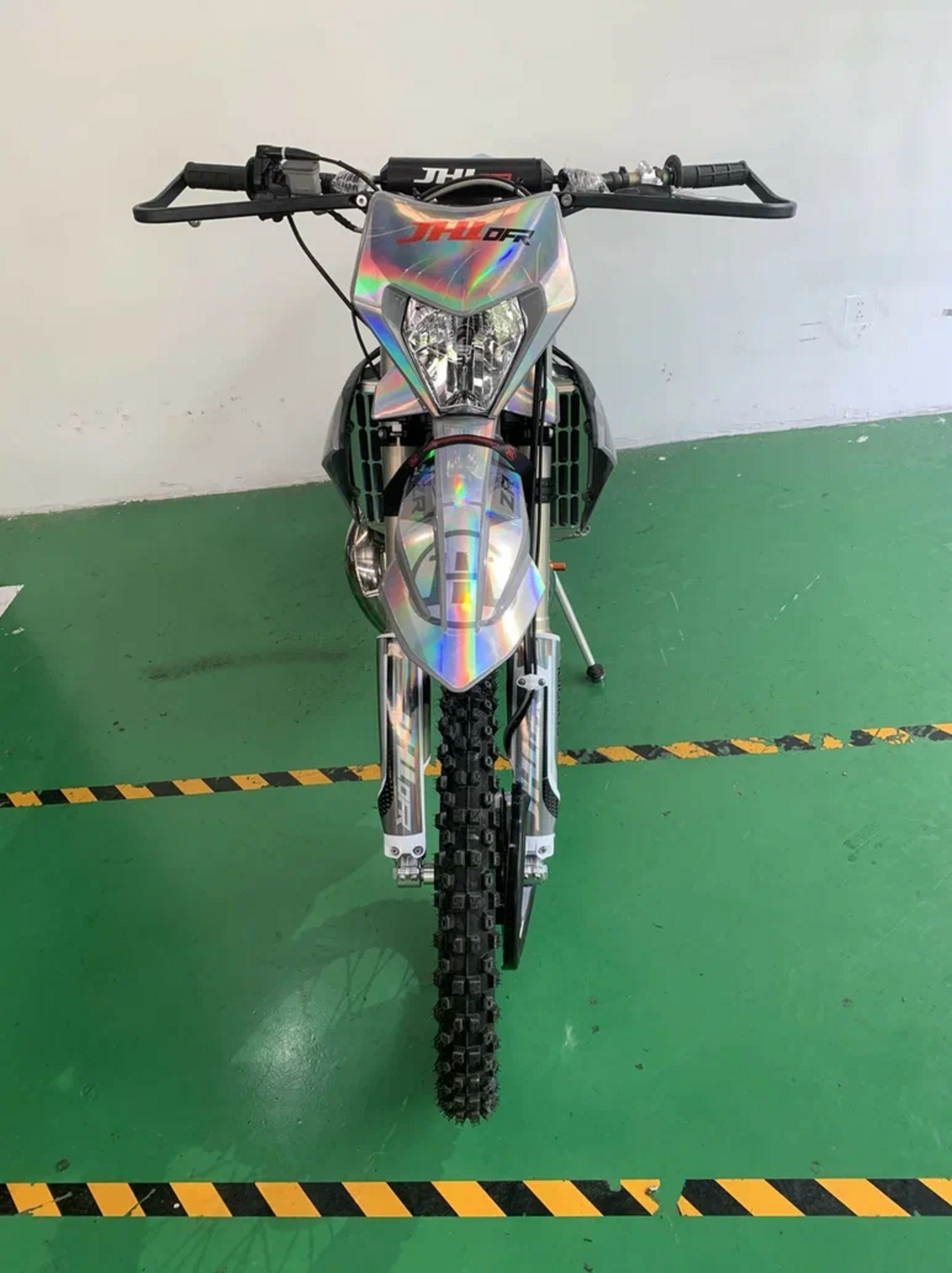Мотоцикл JHL M6 — это современный и универсальный внедорожный мотоцикл, который сочетает в себе мощь, надежность и стильный дизайн. Он создан для любителей активного отдыха, экстремальных поездок по бездорожью и тех, кто ценит свободу передвижения. JHL M6 станет отличным выбором как для начинающих, так и для опытных райдеров, которые ищут качественный и доступный мотоцикл для покорения сложных трасс.Основные характеристики:Двигатель: Мощный 2-тактный одноцилиндровый двигатель объемом 300 куб. см с воздушным охлаждением. Он обеспечивает стабильную работу в любых условиях и достаточную мощность для преодоления сложных участков.Трансмиссия: 5-ступенчатая механическая коробка передач, которая позволяет легко управлять мотоциклом как на бездорожье, так и на ровных трассах.Подвеска: Длинноходная передняя вилка и задний моноамортизатор обеспечивают комфорт и устойчивость на неровных поверхностях, поглощая удары и вибрации.Тормоза: Дисковые тормоза на обоих колесах гарантируют надежное и эффективное торможение даже в сложных условиях.Колеса: Прочные спицованные колеса с внедорожными покрышками обеспечивают отличное сцепление с грунтом, песком, грязью и другими типами поверхностей.Дизайн: Агрессивный и современный внешний вид с защитными элементами, такими как дуги, пластиковые крылья и прочная рама, подчеркивает спортивный характер мотоцикла.Вес: Легкая конструкция (около 120-130 кг) делает мотоцикл маневренным и простым в управлении.:Идеален для езды по бездорожью, лесам, горам и другим сложным ландшафтам.Простота в обслуживании благодаря надежной конструкции и доступным запчастям.Универсальность: подходит как для активного отдыха, так и для тренировок или соревнований.JHL M6 — это отличный выбор для тех, кто ищет надежный и недорогой внедорожный мотоцикл. Он подойдет как для новичков, так и для опытных райдеров, которые хотят покорять бездорожье, участвовать в мотокроссах или просто наслаждаться активным отдыхом на природе.