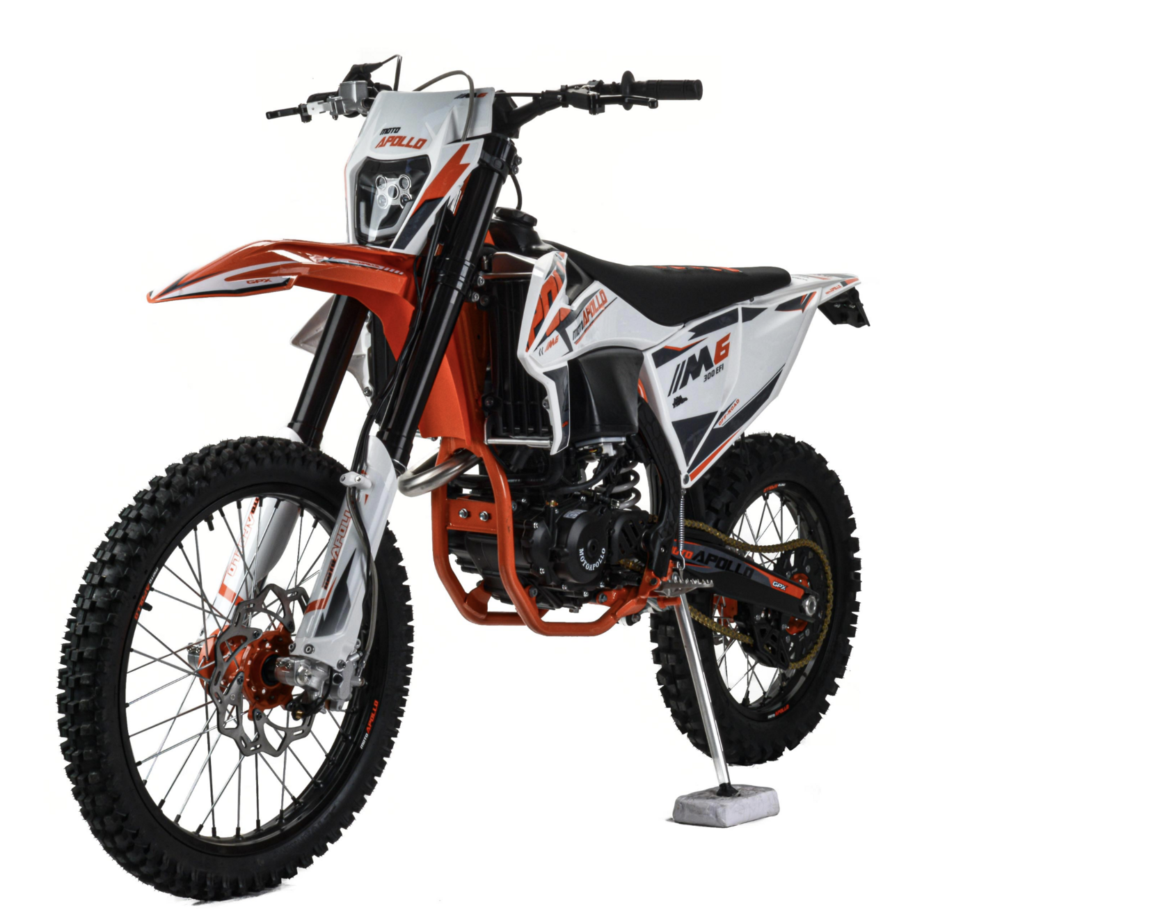 Мотоцикл moto Apollo M6 300 EFI - кроссовый мотоцикл с полноценной колесной базой и высокой посадкой вбогатой комплектации. Мотоцикл оснащен двигателями NC182 MN EFI с балансировочным валом и водяным охлаждением, комплектуетсяэлектронной системой впрыска с возможностью настройки систем питания.Отлично подойдет для людей с продвинутым уровнем, а также для участия в соревнованиях.Визитной карточкой мотоцикла является агрессивный дизайн, рама из Cr-Mo труб, обладающейвысокими прочностными характеристиками, современной подвеской с выносными регулировкамиотскока и компрессии, фрезерованными анодированными траверсами передней вилки, ободами изавиационного алюминиевого сплава, наличие электростартера, Линзованной LED оптики свозможностью переключения ближний\дальний свет. Выхлопная система с резонатором "AKRAPOVIC"совместно с системой POWER BOMB, которая увеличивает мощность на низких оборотах и улучшаетдожигание топливной смеси, что ведет за собой экономию топлива на средних оборотах.NC182