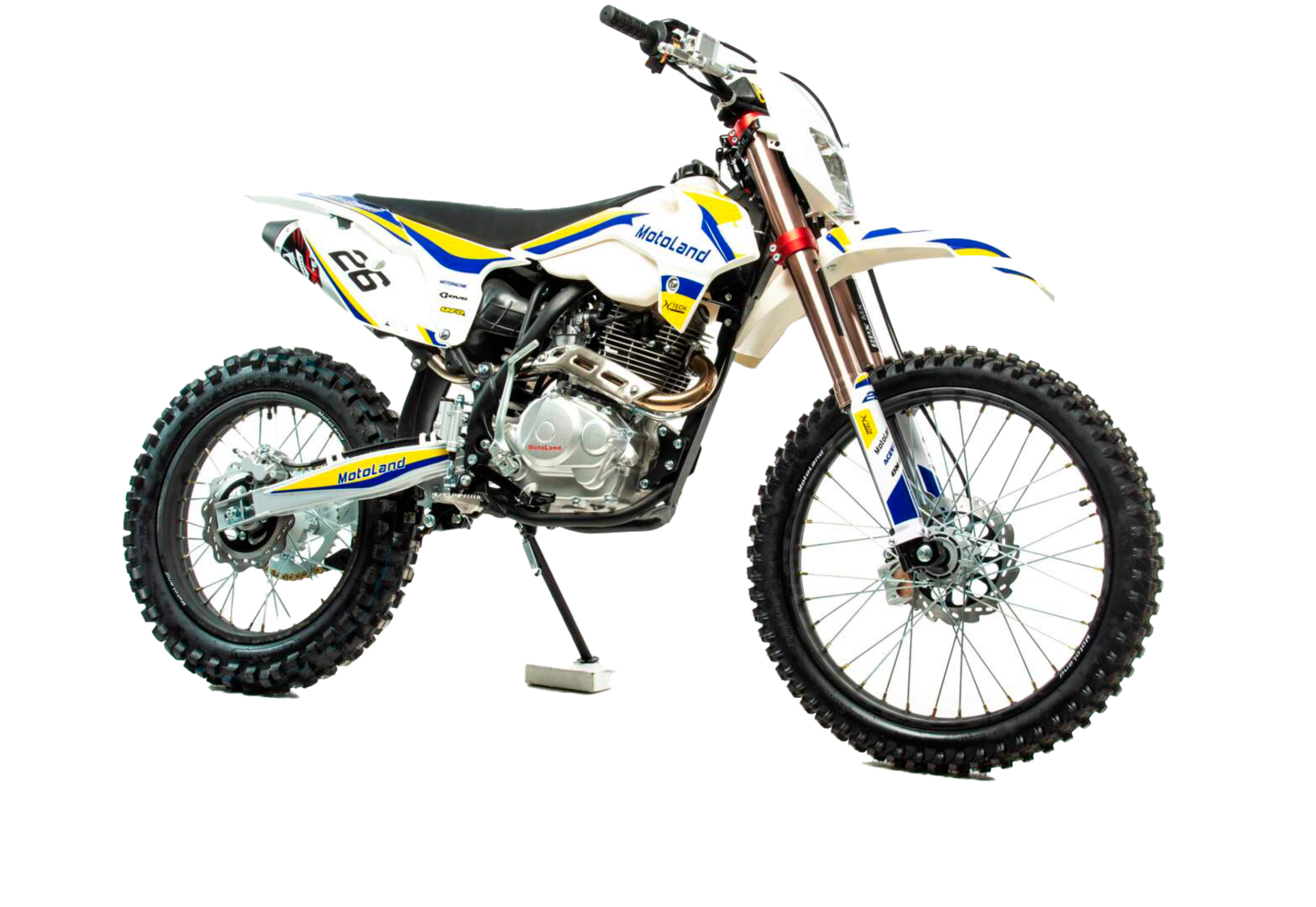 Команда PITBIKEMARKET представляет вашему вниманию Мотоцикл Motoland CRF250 2021 года. Этот эндурик предназначен для активного передвижения по бездорожью, по полям, лесам, горам, труднопроходимой местности. База:За основу этого мотоцикла взят один из самых популярных эндуро BSE J1 250 LE. C него на Motoland перекочевала рама, пластик и основные навесные элементы. Рама закрытого типа выполнена из стали, также как и пластик срисована с новой версии австрийского KTM. Высота по седлу составляет 88 см. На нем комфортно расположится райдер ростом от 170 см, весом от 60 кг. Небольшая высота по седлу позволяет с успехом использовать этот мотоцикл людям без опыта езды, отличная "учебная парта". Максимальная нагрузка 130 кг. В актив можно отнести и относительно небольшой вес мотоцикла в 110 кг.Двигатель:Сердцем этого эндурика является двигатель 165FMM. По праву можно сказать что моторы с этой маркировкой самые распространенные на мототехнике их поднебесной. Они сочетают в себе высокую надежность, мощность (около 16 лс) и обилие запчастей в любых уголках РФ. На мотор установлен карбюратор Keihin PE28. Этого карбюратора вполне достаточно для активной езды, есть регулировка холостого хода и качества смеси. Воздушный фильтр спрятан в пластиковый короб (фильтрбокс). Он позволяет преодолевать броды и надежно защищает мотор от попадания грязи и воды.Подвеска:Для снижения себестоимости мотоцикла на нем применяется стандартная передняя вилка. Хоть она и без регулировок, но с очень большими ходами. Ее стихия - езда по лесу, преодоление упавших деревьев, камней, ям, мелких неровностей. Очень комфортная и предсказуемая. Задний амортизатор с регулировкой, соединен с маятником через линки прогрессии. Колеса:На мотоцикле установлены усиленные алюминиевые колеса. Резина CST - мягкая резина с хорошим зацепом. Буксаторы не установлены в базовой комплектации, но их всегда можно дозаказать.Тормоза:Спереди и сзади двухпоршневые гидравлические тормоза с качественными медными колодками. Педаль заднего тормоза удобно проходит над штангой крепления подножек. Имеет регулировку по углу наклона.Навесное:Из приятных бонусов особенно хотелось бы отметить толстостенный алюминиевый руль переменного сечения, мягкие грипсы, замок зажигания, фара и щиток в комплекте, очень удобный кикстартер. Вам больше не нужно переживать из-за севшего аккумулятора в дали от дома. Мот удобно заводится ногой. Также можно заводить с помощью электростартера.Ну и самое приятное - это цена этого аппарата. Он доступен абсолютно всем, как начинающим райдерам, так и владельцам дорогих японцев, которых жалко насиловать лесных гряземесах. Motoland CRF 250 - отличный вариант, если вам уже надоел ваш питбайк! Также его называют убийцей 150-190-х питбайков, т.к. за ту же цену можно приобрести полноразмерный эндуро!Питбайк в наличии в наших магазинах. Бесплатная доставка по РФ*. Рассрочка.