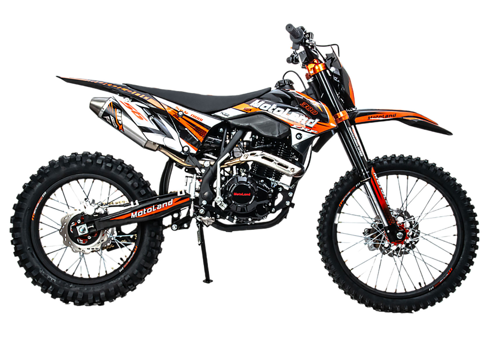 Встречайте! Обновленный кроссовый мотоцикл Motoland CRF300 с двигателем увеличенной мощности 175 FMM! Идеален для езды по бездорожью, т. к. имеет отличную проходимость на песке и мягком грунте.Объем двигателя 300 см3 и мощность 25 л. с. обеспечивает хорошую динамику разгона и высокую максимальную скорость.Коробка передач механическая, пятиступенчатая. Карбюратор NIBBI PE 30 оснащен резиновым патрубком, что обеспечивает снижение вибрации.Объём топливного бака 6 литров.Передняя подвеска — телескопическая, не регулируемая, перевёрнутого типа. Вилка GPX Professional оснащена клапанами для стравливания избыточного давления, что позволяет значительно повысить ресурс работы сальников.Задняя подвеска с прогрессией, амортизатор имеет регулировку преднатяг пружины.Рама мотоцикла полудуплексная, стальная.Сиденье кроссовое, с противоскользящим покрытием.Обода колес спицованные, стальные, черного цвета с алюминевыми, окрашенными литыми ступицами.Покрышки 80/100 "21 110/100 "18 с мощными грунтозацепами обеспечивают превосходное сцепление с грунтом и позволяют контролировать управляемость на нестабильных поверхностях кроссовых трасс.Размер заднеего колеса — 18 дюймов (450 мм), переднего — 21 дюйм (530 мм).Передние и задние тормоза дисковые, с надёжными двухпоршневым и однопоршневым суппортами соответственно.Руль GPX переменного сечения с алюминевыми литыми траверсами, выдерживает значительные нагрузки, в том числе при падениях.Высота по рулю и седлу позволяет чувствовать себя удобно как людям среднего, так и большого роста.Мотоцикл Motoland CRF 300 оснащён светодиодной фарой головного света. Система зажигания электронная (CDI). Запуск двигателя комбинированный ножным кикстартером и электростартером.