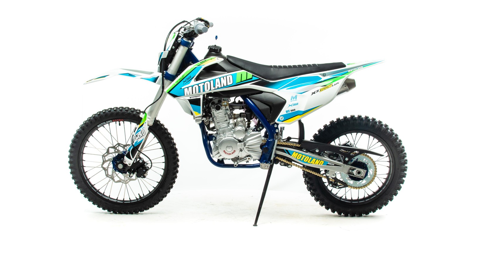 MotoLand X3 300W LUX Новинка 2022 года.Надёжная техника из самых популярных компонентов оснащена Двигателем ZONGSHEN 174FMM с кикстартером и электростартером Мощностью 24 Л.С. на двигателе установлен Карбюратор NIBBI .Это полноразмерный кроссовый мотоцикл его база по осям составляет 1430 мм., и габаритами 2180х800х1300 мм. Высота по седлу составляет 940 мм., что по сравнению с Моделью XT 250 ST 21/18 ниже порядка 20 мм. Что позволяет комфортно себя чувствовать райдерам среднего роста.За счет сбалансированной базы мотоцикл имеет отличную управляемость, а конструкция рамы и особенности настройки подвески GPX способствуют максимальному поглощению неровностей дорожного покрытия, а так же усиленная прогрессия на игольчатых подшипниках.Алюминиевые обода c антибуксаторами, усиленными спицами и ступицами CNC. На кроссовой резине Yuanxing 80/100-21 / 100/90-18На мотоцикле установлена обновлённая тормозная система аналог «brembo» с медными колодками , что обеспечивает отличные тормозные характеристики. Особенностью заднего тормоза является, лапка верхнего расположения с эксцентриковой регулировкой.Выпускной патрубок с резонатором Power Bomb имеет крепления на пружинах для снижения вибрации. Глушитель с уникальным дизайном прямоточного типа, полностью алюминиевый для облегчения веса.