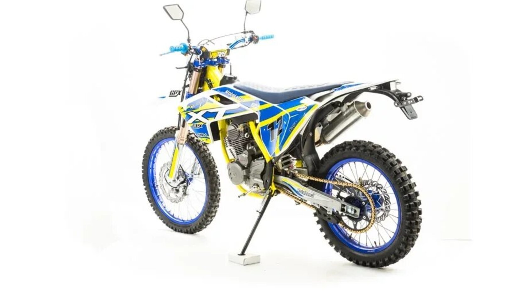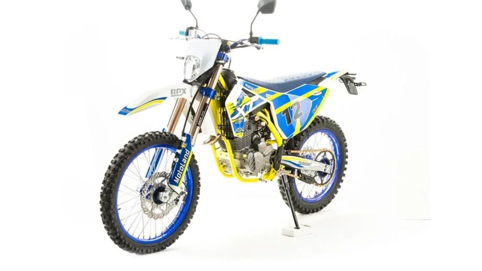 Мотоцикл MOTOLAND XT250 STколеса 21" / 18") – обновленная модель компании MotoLand. С улучшенной подвеской, имеющей настройки сжатия и отбоя переднего и заднего амортизатора. Позволяет передвигаться не только по пересеченной местности но и по дорогам общего пользования Оснащен дополнительным освещением и подворотниками. Мощный 4-х тактный двигатель ZONGSHEN 172FMM мощностью 21 л.с. позволит выжать из мотоцикла максимум. Запуск двигателя производится как кикстартером так и электростартером