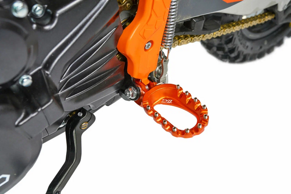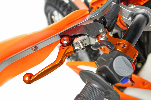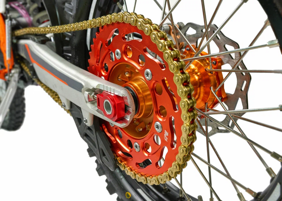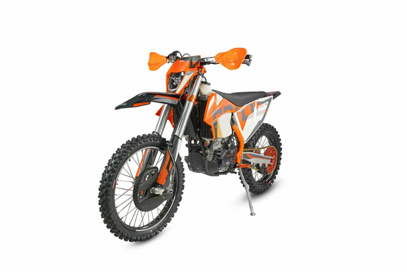 КомплектацияЭлектронная приборная панель, противоскользящее сиденье, защита рамы от протирания ботинками, подножки «AJ1» (алюминий 6063 с шипами), подножка боковая «AJ1» (алюминий 7075-Т6), невозгораемый воздушный фильтр «AJ1» – Twin Air с увеличенной площадью, ведомая звезда «AJ1» (520, алюминий 7075-Т6), защита рук, грипсы OTOM/Lock-On, передние и задние буксаторы «AJ1», откидные алюминиевые рычаги 270, алюминиевая лапка КПП, пульт света КТМ, LED фара 5 линз, моточасы, фрезерованная траверса X trigДвигательМодель оснащена 1-цилиндровым 4-х тактным двигателем ZONGSHEN ZS174MN-5A с водяным охлаждением и балансировочным валом объёмом 279,6 см3, который выдаёт 27 л.с.ПодвескаПередняя вилка "MNT" перевернутого типа T7 48- 910mm с регулировкой на сжатия и отбой. Моноамортизатор "MNT" также с регулировками. Система прогрессии, обеспечивает равномерную, мягкую работу и увеличивает длину рабочего хода подвески. Также ось крепления маятника совпадает с осью крепления ножки. Это существенно улучшает развесовку мотоцикла.КолесаСпереди и сзади установлены антибуксаторы бренда "AJ1", которые притягивают покрышку к ободу, позволяя ездить по бездорожью при низком давлении в камерах, не давая покрышке проворачиваться во время езды. Размер передней покрышки: 80/100 R21. Размер задней покрышки: 120/90-R18. Модель комплектуется "жирной" резиной "KENDA". Все эти характеристики позволяют мотоциклу отлично себя чувствовать в песке и грязи.Тормозная системаПолностью гидравлическая с армированными шлангами. Спереди и сзади установлен двухпоршневой суппорт. Диаметр дисков перед/зад, мм: 260/220. Данная конфигурация тормозных механизмов, позволяет быстро и безопасно оттормаживаться даже в самых непростых условиях.Сухой вес мотоцикла 117кг