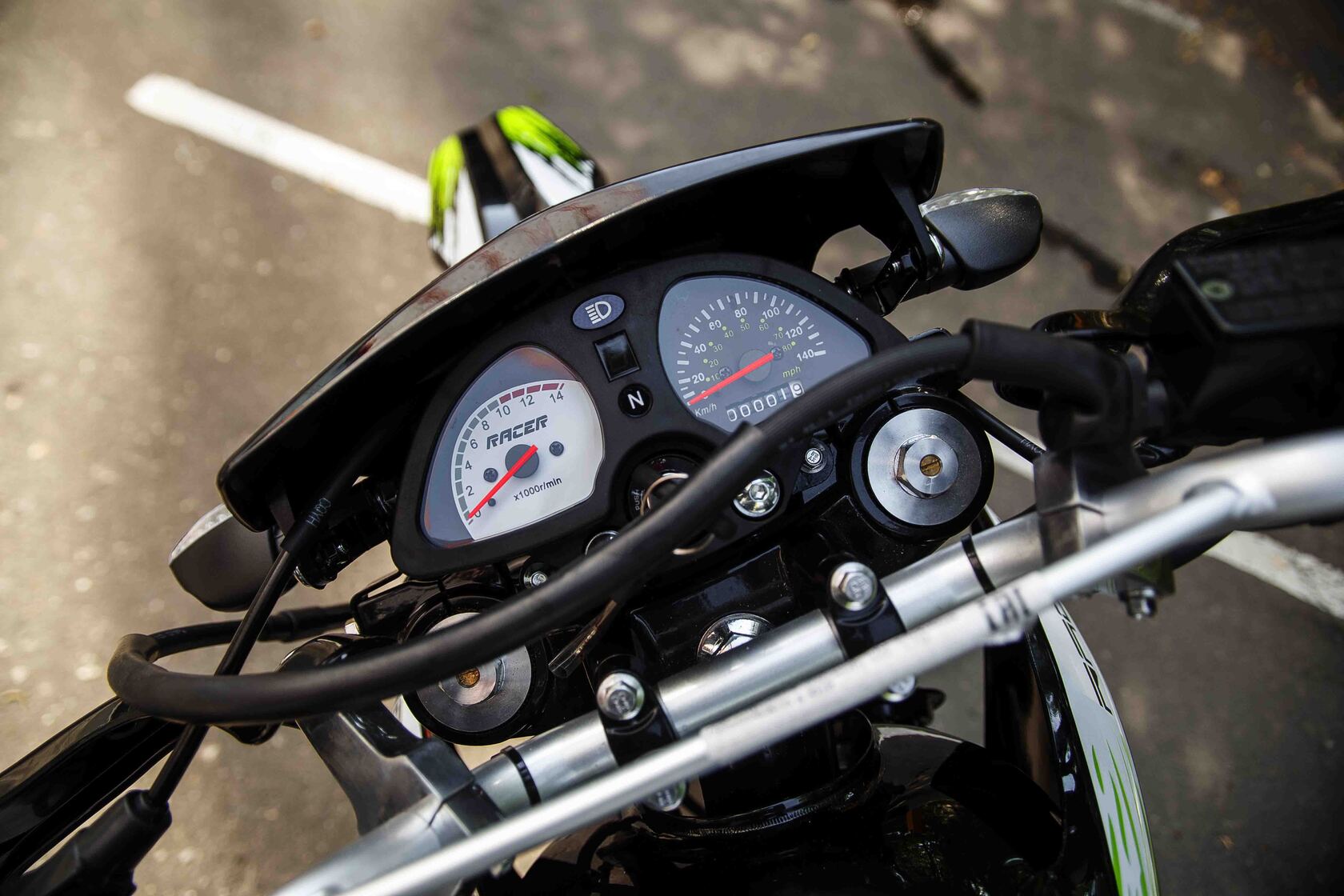 Мотоцикл Racer PANTHER RC300-GY8Х – ваш надёжный спутник! Купив Racer Panter Вы получаете прекрасный набор: моноамортизатор с регулировками жесткости и отбоя, надежный маятник, 5-ти ступенчатую КПП и дисковые тормоза. 12-литровый запас топлива позволяет проехать более 300 км без дозаправки. Современная электронная панель приборов мотоцикла удобна и информативна. Индикация включенной передачи и тахометр позволяют контролировать крутящий момент 270 кубового двигателя. Двигатель двухклапанный с балансировочным валом и мощность составляет почти 20 л.с. Расход топлива составляет около 3,4 л/100 км. А максимальная скорость составляет примерно 145 км/ч. Замок зажигания имеет защиту от несанкционированного доступа. Яркие современные указатели поворотов на светодиодах LED дополнены звуковым зуммером.