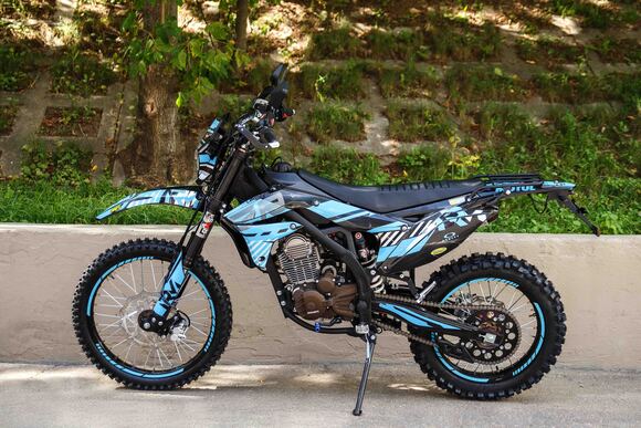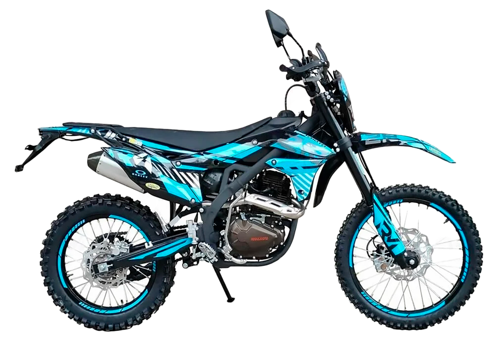 Regulmoto ZR 250 Enduro 2021г.«Regulmoto» представляет вниманию поклонников фри-райда мотоцикл Regulmoto ZR 250 Enduro. Стильный и доступный байк многоцелевого назначения найдет применение в качестве надежного аппарата для покорения бездорожья, а также может использоваться для решения широкого круга утилитарных задач и передвижения по дорогам общего пользования.В основе конструкции Regulmoto ZR 250 Enduro – мощная стальная рама, поставленная на колеса 21/18, которые наилучшим образом подготовлены к офф-роаду. Ободья и ступицы колес изготовлены из алюминия, также установлены усиленные спицы и буксаторы, надежно фиксирующие покрышки на ободе. Подвеску эндуро-байка представляют длинноходная телескопическая вилка-«перевертыш» спереди и стальной маятник с прогрессией и моноамортизатор с компенсационным резервуаром сзади. Работу амортизаторов при необходимости можно настроить при помощи регулировки сжатия/отбоя.Силовая установка мотоцикла представлена одноцилиндровым 4-тактным двигателем Zongshen SZ172FMM-3A с воздушным охлаждением рабочим объемом в 249,9 см3; за подготовку топливной смеси отвечает карбюратор Nibbi PE28. Технический потенциал надежного и производительного двигателя позволяет демонстрировать 21 лошадиную силу максимальной мощности и 18 Hm максимального крутящего момента.Regulmoto ZR 250 Enduro также привлекает внимание отличными внешними данными: мотоцикл комплектуется крепким и гибким пластиком с ярким дизайном, выполненным в узнаваемой стилистике популярной модели известного производителя. Подбор качественных компонентов также заслуживает внимания: