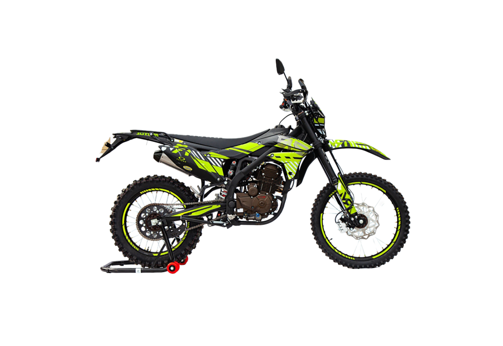Стильный и доступный байк многоцелевого назначения найдет применение в качестве надежного аппарата для покорения бездорожья, а также может использоваться для решения широкого круга утилитарных задач и передвижения по дорогам общего пользования.В основе конструкции Regulmoto ZR 250 – мощная стальная рама, поставленная на колеса 21/18, которые наилучшим образом подготовлены к офф-роаду. Ободья и ступицы колес изготовлены из алюминия, также установлены усиленные спицы и буксаторы, надежно фиксирующие покрышки на ободе. Подвеску эндуро-байка представляют длинноходная телескопическая вилка-«перевертыш» спереди и стальной маятник с прогрессией и моноамортизатор с компенсационным резервуаром сзади. Работу амортизаторов при необходимости можно настроить при помощи регулировки сжатия/отбоя.Силовая установка мотоцикла представлена одноцилиндровым 4-тактным двигателем Zongshen ZS172FMM-5 (PR250) с воздушным охлаждением рабочим объемом в 249,9 см3 с балансировочным валом; за подготовку топливной смеси отвечает карбюратор Nibbi PE30. Технический потенциал надежного и производительного двигателя позволяет демонстрировать 21 лошадиную силу максимальной мощности и 18 Hm максимального крутящего момента.Regulmoto ZR 250 PR также привлекает внимание отличными внешними данными: мотоцикл комплектуется крепким и гибким пластиком с ярким дизайном, выполненным в узнаваемой стилистике популярной модели известного производителя.