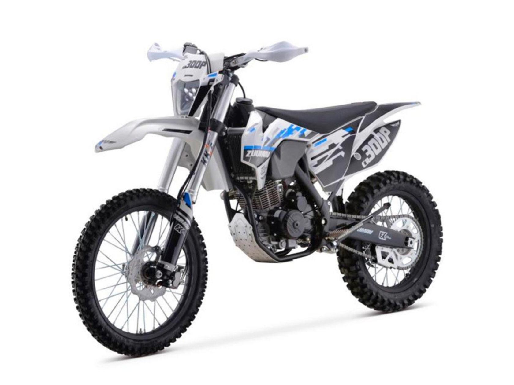 Модель ZUUMAV FX CR300P ,Двигатель 4Т, HS174YMN 300 куб.мощность 27 л.с., воздушное охлаждение,Рама AJ1 хром-молибденовая повышенной прочности, КПП -5 скоростей,Легкий выжим сцепления AJ1*,Карбюратор NIBBI RACING PWK30 ЧЕРНЫЙ, алюминиевый глушитель FMF,Выхлопная система из нержавеющей стали с резонатором,Толстостенный увеличенный черный бак на 7,5 литра,Трехпозиционный ключ зажигания, Цифровой дисплей,электро и кикстартер, Алюминиевый руль 28/22, Короткоходная ручка газа,Складные рычаги сцепления и тормоза CNC. Защита рук усиленная,Передняя вилка ККЕ, полностью регулируемая, задний амортизатор ККЕ регулируемый с Алюминиевой прогрессией , Алюминиевые усиленные обода , Ступицы aluminum, БуксаторыAJ1 облегченные из композитных материалов, усиленные спицы 4 мм.,Передняя покрышка 80/100-21,Задняя покрышка 110/100-18 YUANXING off-road, Вес 115 кг.Антискользящие сиденье. Диодная фара,Щиток номера,Комплект жиклеров,Звезды 13/51, Цепь SFR 520. Подшипники Тайвань,Алюминиевая защита двигателя.
