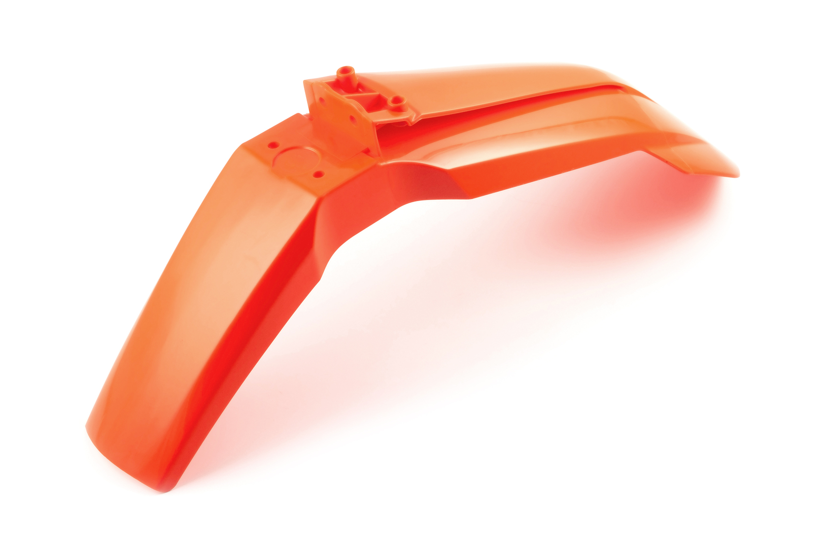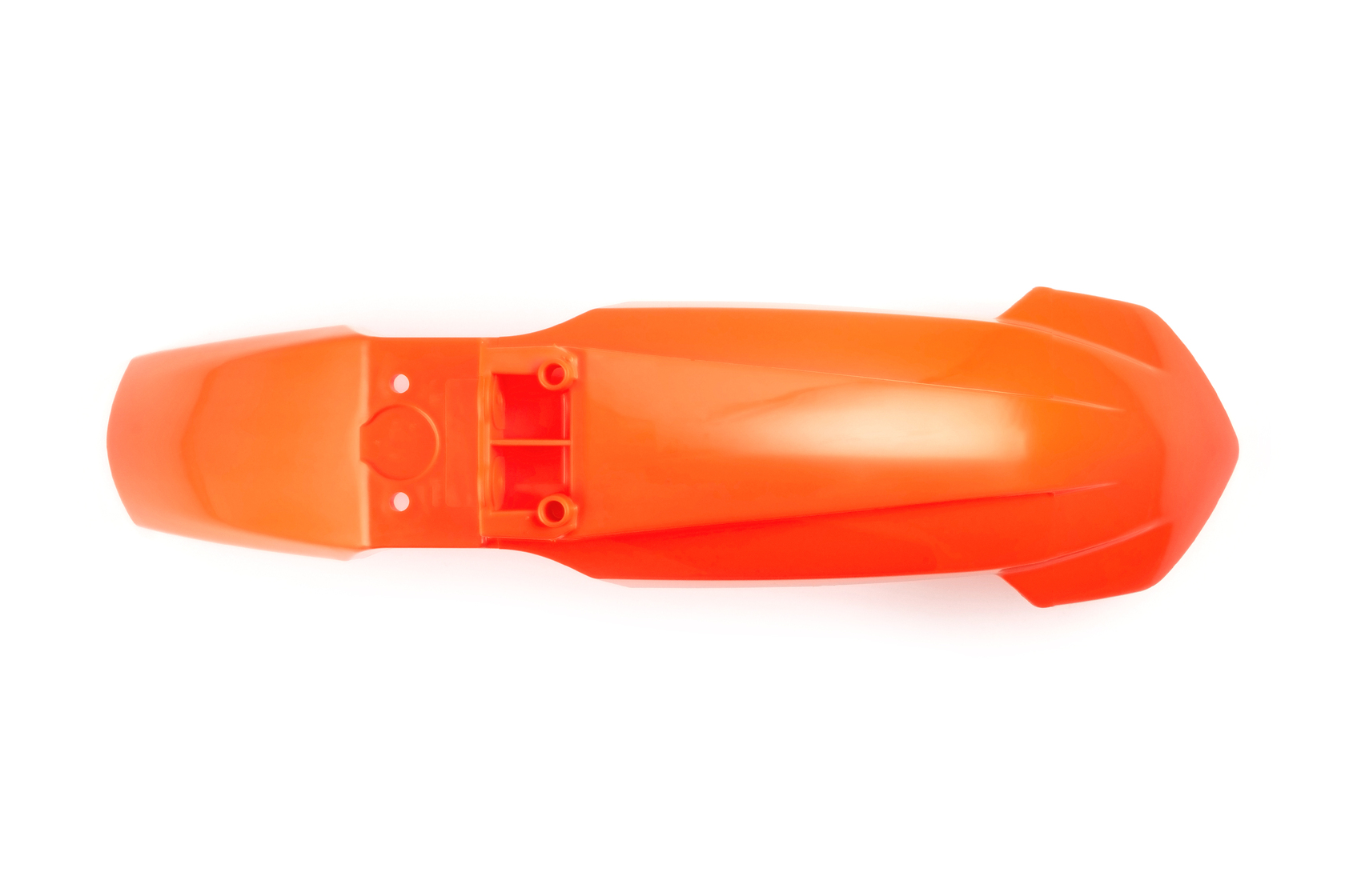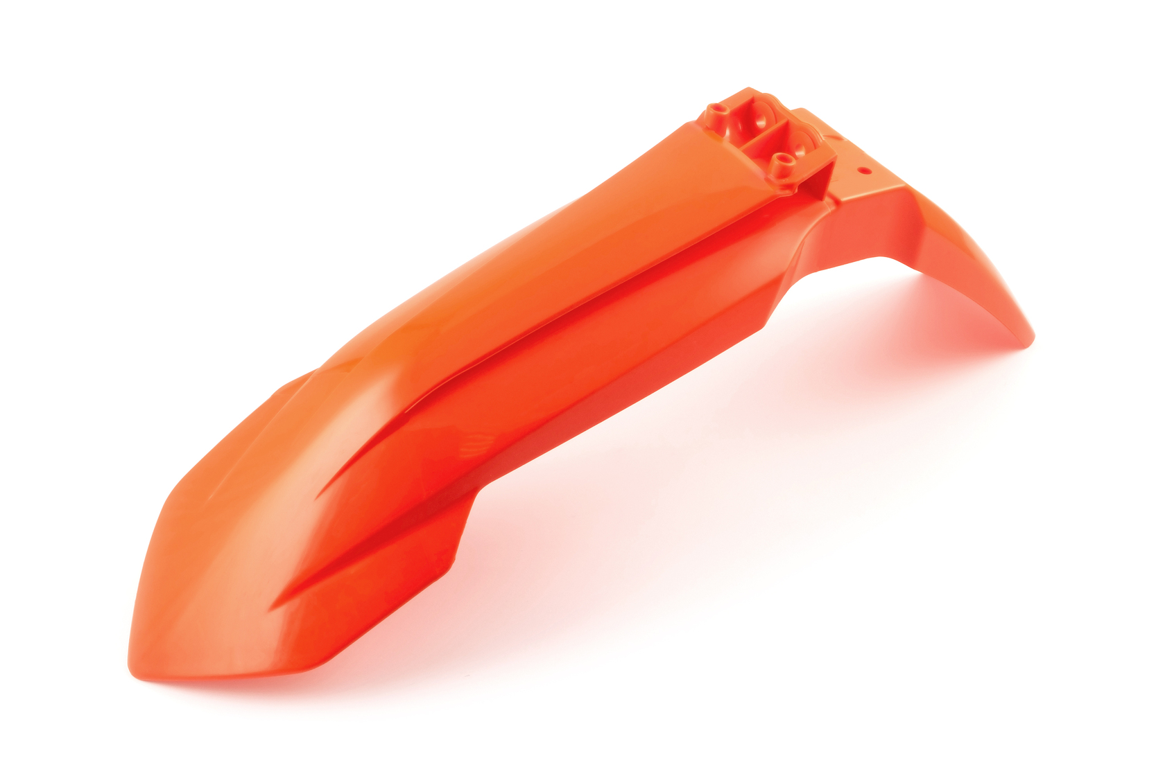 Оранжевое переднее крыло для эндуро мотоциклов на базе KTM 2017-2023 года и аналогичных моделей с рамой K8. Выполнено из прочного ударопрочного пластика, точно повторяющего тип KTM 2017-2023. Полный аналог оригинального крыла KTM с артикулом 79008010000. Деталь защищает байк от грязи, камней и воды, устанавливается на штатные крепления без доработок.