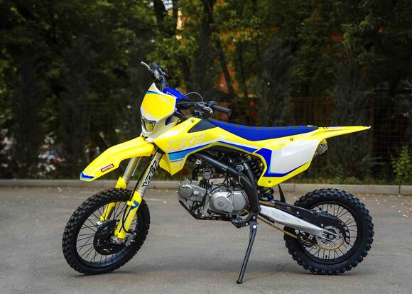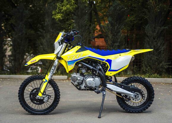 Представляем Вам обновленный RXF Freeride 125 LE 17/14. Модель обзавелась фарой, электростартером и также получила обновленный дизайн графики.RXF Freeride 140 L – по праву считается отличным выбором из линейки Freeride. Мотор YX 125 с электростартером достаточно мощный и тяговитый, чтобы не дать скучать опытным райдерам, но в тоже время достаточно покладистый и безопасный для новичков. На обновленном Freeride теперь есть фара головного света, которая идет в комплекте с питбайком.