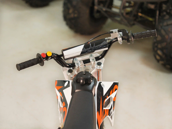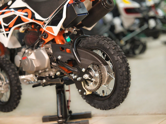 Питбайк KAYO Mini TS70 10/10 – идеальный снаряд для юных экстремалов, который можно использовать на лёгких кроссовых трассах и дорогах с различным покрытием. Удобный, простой и надёжный мотоцикл, который полностью оправдывает свою цену.Одноцилиндровый 4-тактный двигатель воздушного охлаждения YX1P47FMD объёмом 72 см3, выдаёт 5 л.с. Карбюратор JK PZ19 обеспечивает бесперебойную работу техники в самых жёстких условиях эксплуатации, простоту и лёгкость в обслуживании, а также неприхотливость к качеству топлива. Питбайк оснащён автоматической коробкой передач, что позволит райдерам полностью сосредоточиться на управлении питбайком.Аппарат имеет вес всего 52 кг. Усиленная рама из хром-молибденового сплава и подвеска позволяют эффективно амортизировать удары при езде по неровностям и препятствиям на трассе. Передняя подвеска – телескопическая вилка длиной 540 мм, задняя – моноамортизатор 255 мм. Рама и пластик являются собственной разработкой производителя. Мотоцикл оснащён классическими стальными спицованными колёсами диаметром 10 дюймов. Эффективное и безопасное замедление с любых скоростей обеспечивают гидравлический дисковый тормоз спереди и барабанный – сзади. Высококачественная износостойкая резина с развитым протектором отлично держит дорогу на различных типах покрытия. Байк оснащён системой запуска двигателя при помощи кнопки электростартера.Если вы ищете послушный, компактный, шустрый, красивый питбайк для своего малыша, считайте, что вы его нашли.