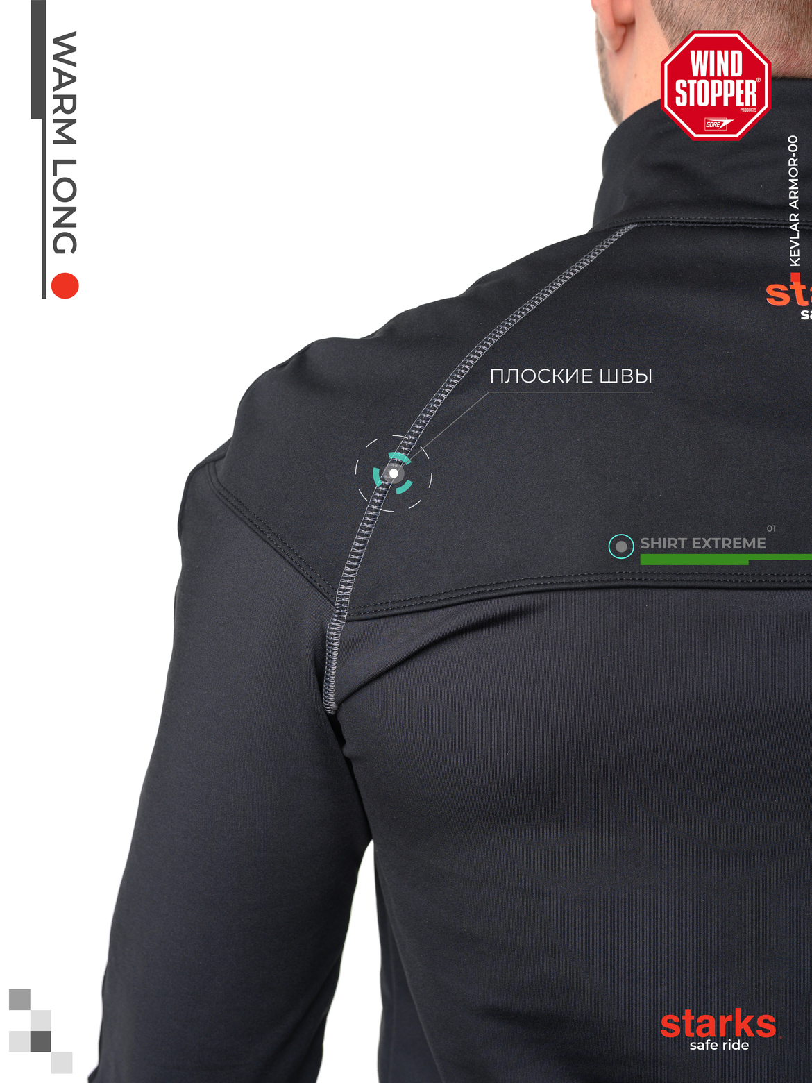 Кофта WARM Long shirt Extreme - идеальный выбор для активных физических нагрузок и экстремального спорта. Благодаря своему анатомическому крою и эластичности, она создает эффект "второй кожи", обеспечивая комфорт и защиту от перегрева и переохлаждения. Эта кофта подходит для самых активных видов спорта и экстремального использования. Она не боится сильных потоков ветра и идеально подходит для парашютистов. Материал, из которого изготовлена кофта, - сертифицированная ткань Polar Stretch. Также используется многофункциональная ткань Softshell с мембраной. Этот материал заменяет несколько слоев одежды, обеспечивая отведение влаги, вентиляцию, сохранение тепла и защиту от ветра и осадков. Кофта также оснащена системой Stop Bacteria, которая предотвращает размножение бактерий и исключает появление неприятного запаха при активной эксплуатации. Важными деталями этой кофты являются виндстоппер и система "плоских" швов, которые не создают дискомфорта при движении.
