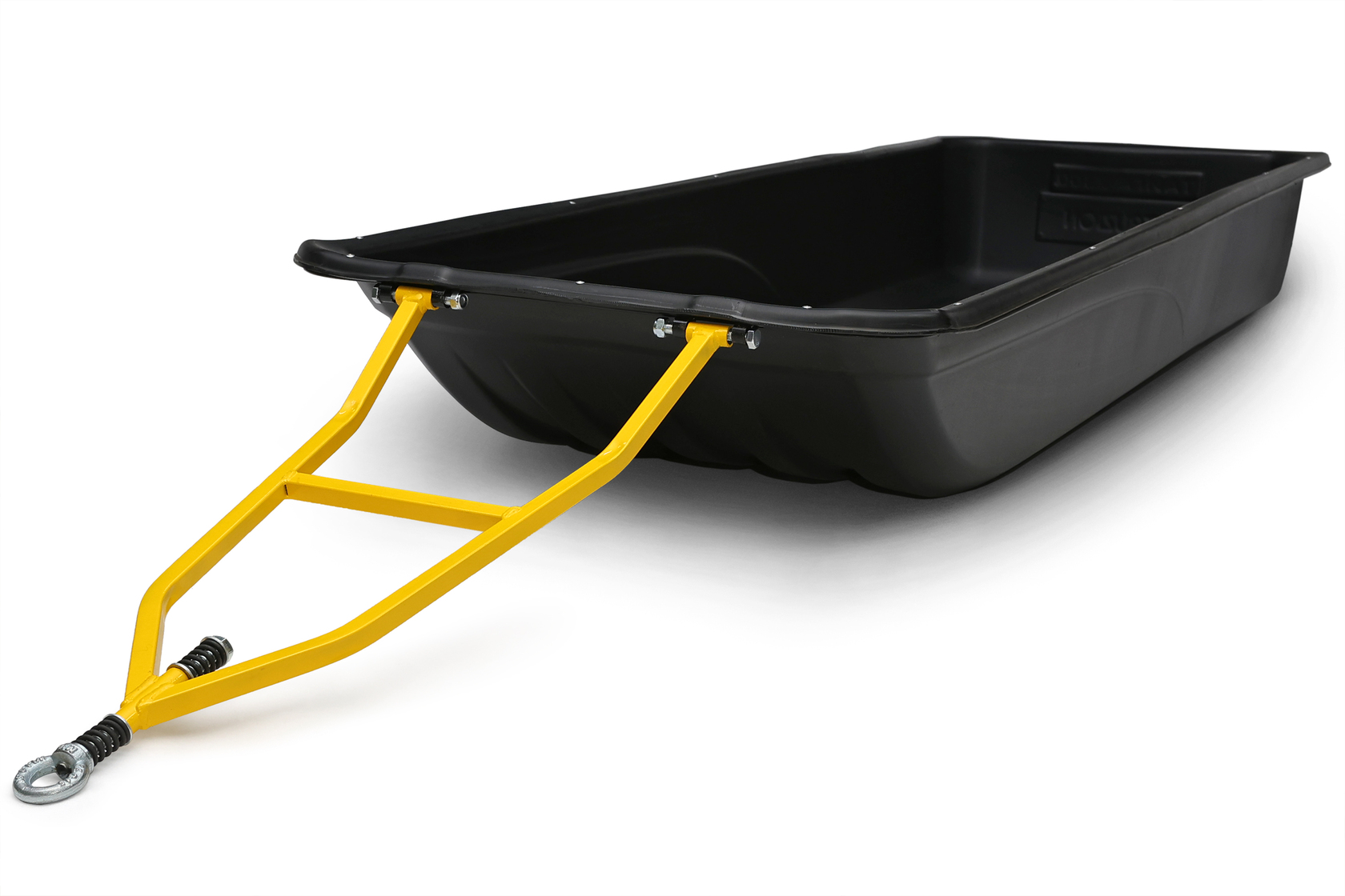 Крупногабаритные сани-прицеп для профессионального использования с снегоходами и мотобуксировщиками. Максимальная длина 2300 мм обеспечивает исключительную вместимость для перевозки особо объемных грузов. Изготовлены из сверхпрочного ПНД с УФ-стабилизацией. Полная комплектация сцепным устройством и стропами обвязки.