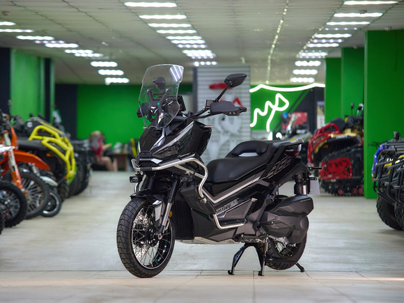 Скутер ZONTES ZT368-G – максискутер двойного назначения, готовый пронестись по улицам города за его пределы и отправиться по грунтовым тропам прокладывать свой маршрут туда, куда вам потребуется. Регулируемая подвеска с перевёрнутой телескопической вилкой спереди обеспечит отличную управляемость и устойчивость в любых условиях.Силовая установка представлена одноцилиндровым 4-тактным двигателем. Двигатель имеет объём 368 см³ и обеспечивает мощность в 38,8 л.с. Оснащён инжектором BOSCH, системой жидкостного охлаждения и вариатором. Запуск двигателя осуществляется с помощью бесключевого доступа.Ёмкость топливного бака 17,5 литра.Колёса имеют диаметр 17 дюймов спереди и 14 дюймов сзади. Для подвески спереди используется телескопическая вилка перевёрнутого типа, а сзади установлены 2 гидравлических амортизатора. Гидравлические дисковые тормоза произведены компанией J.JUAN, входящей в холдинг BREMBO. Мотоцикл также оснащён 2-канальной ABS-системой, противобуксовочной системой TCS System и датчиками давления в шинах.ZT350-G оборудован яркой LED-фарой, мультимедийной приборной панелью с TFT-дисплеем, имеются 2 USB-порта.Габариты скутера 2230х925х1290 мм. Колёсная база 1560 мм. Высота по седлу 795 мм. Вес 198 кг.