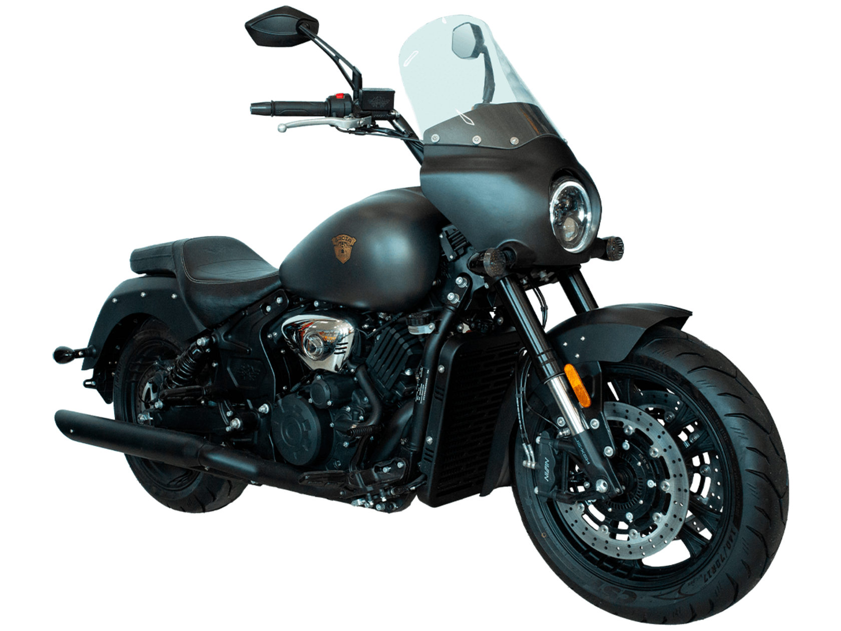 GROZA ML800 – роскошный круизёр, который создан для суперкомфортного перемещения на любые расстояния. Его дизайн исполнен в классическом стиле, соответствующем всем канонам данного типа мотоциклов.Двухцилиндровый V-образный двигатель объёмом 800 см3 мощностью 61 л.с. при высоких показателях динамики и отличном крутящем моменте способен разгонять аппарат до 180 км/ч. Инжекторный впрыск топлива с инжектором DELPHI увеличивает топливную экономичность, а также позволяет добиться высокой приёмистости и неприхотливости агрегата. Привод на ведущее колесо осуществляется ремнём знаменитой марки USA Gates. Жидкостная система охлаждения не допустит перегрева мотора даже на самых непростых маршрутах.Аппарат имеет 6-ступенчатую механическую коробку передач с классической схемой “1-N-2-3-4-5-6”. На мотоцикл установлены литые алюминиевые диски диаметром 17 дюймов. С неровностями дороги эффективно справляются телескопическая вилка перевёрнутого типа спереди и маятник с двумя амортизаторами сзади. Подвеска имеет 7 ступеней регулировки, что обеспечивает лёгкую перестройку на различные режимы езды. Для всего класса круизёров такая опция – большая редкость. Эффективное и безопасное замедление с любых скоростей обеспечивают гидравлические дисковые тормоза спереди и сзади от компании NISSIN.Мощный обтекатель и ветровое стекло эффективно снижают сопротивление ветра и повышают комфорт езды. Длинное заднее крыло со светодиодными фонарями позволяет снизить воздействие бокового ветра на мотоцикл при движении на высоких скоростях.Мотоцикл оснащён светодиодной головной оптикой узнаваемого дизайна.Мотоцикл сочетает в себе отличные технические характеристики, богатое оснащение, комфорт и надёжность, что позволяет вам ощутить настоящую свободу, отправившись на нём в любое путешествие.Комплектация и внешний вид мотоцикла могут отличаться в зависимости от поставки. Изображение на сайте не гарантирует наличие тех или иных опций. Уточняйте информацию при оформлении заказа.