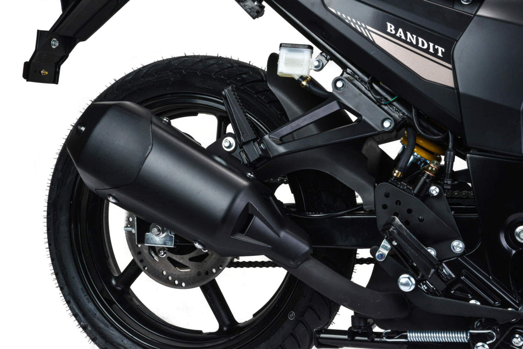 Мотоцикл Motoland BANDIT 300 является классическим представителем семейства дорожным мотоциклов. При этом он обладает всеми чертами мощного сити-байка необходимыми для комфортного передвижения как по городу, так и по шоссе.Стальная рама, объем топливного бака 18 литров. Расход топлива 3 л. на 100кмПодвеска передняя: Телескопическая. Подвеска задняя: моноамортизатор.Колесные диски алюминиевые, размер колес — 17 дюймов. Размер резины (перед / зад): 100/80/17 140/60/17 Зеркала, крепление под номер, подножки второго пассажира. Тормоза дисковые. Мягкое сиденье, обшивка из кож-замаФара, электростартер, замок зажигания, АКБ, поворотники, стоп-сигнал, электронная приборная панель.Двигатель 175FMM бензиновый с воздушно-масляным охлаждением, его рабочий объем - 300 кубов, мощность 25 л.с. Коробка передач - механическая, 5-ступенчатая, знакомая всем водителям по автошколе, а потому разобраться не составит труда.