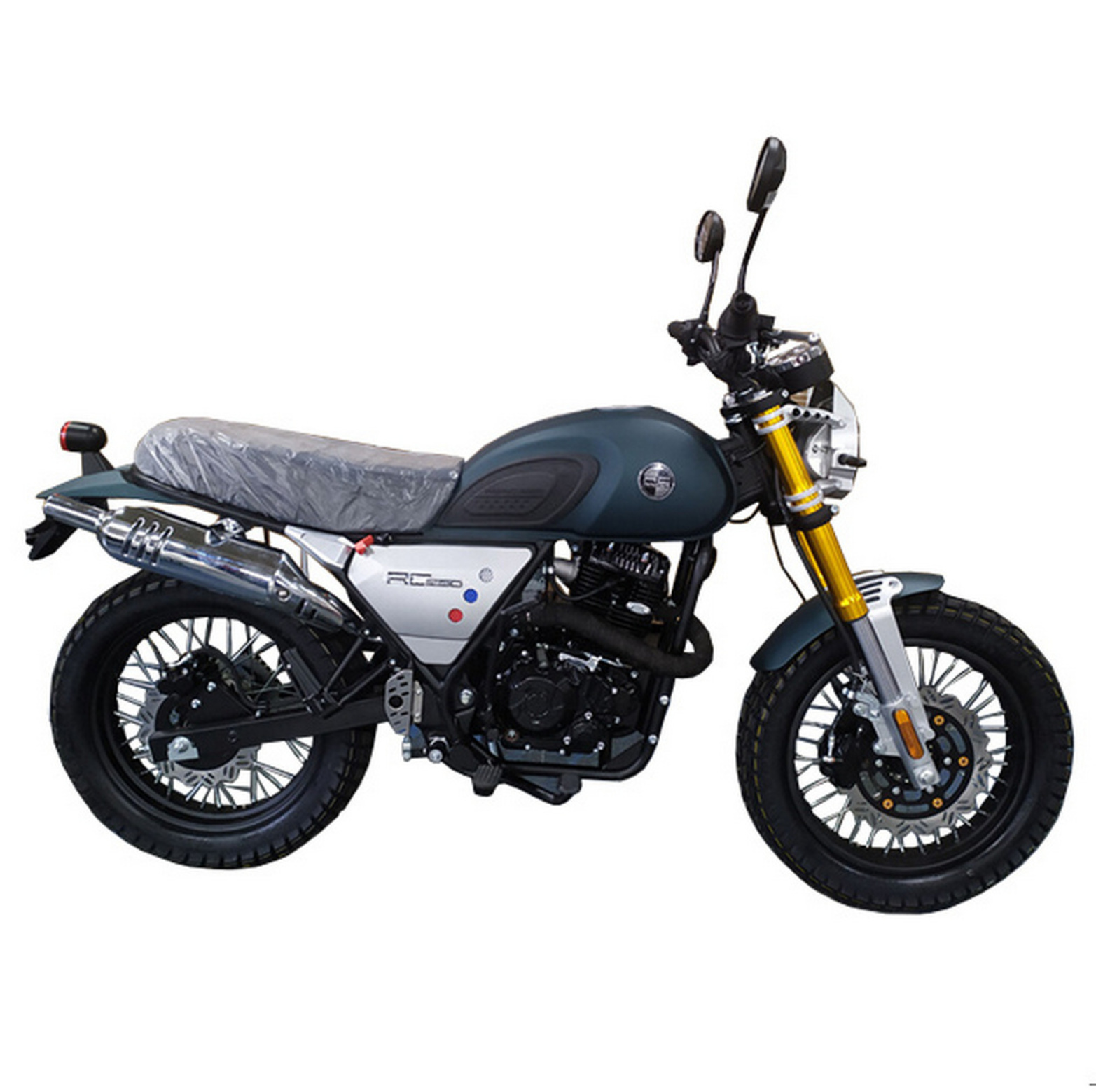 Мотоцикл Racer RC250CK-A Triumph это новинка в линейке дорожных мотоциклов RACER.Мотоцикл оснащен двигателем 166FMM с балансирным валом и 5-ступенчатой коробкой передач, мощностью 17 л.с.Комфортное седло подходит для райдеров среднего роста.На мотоцикле установлена электронная приборная панель.Крылья металлические.Пластиковые детали — боковые облицовки, облицовка фары, крыло где крепится гос номер.