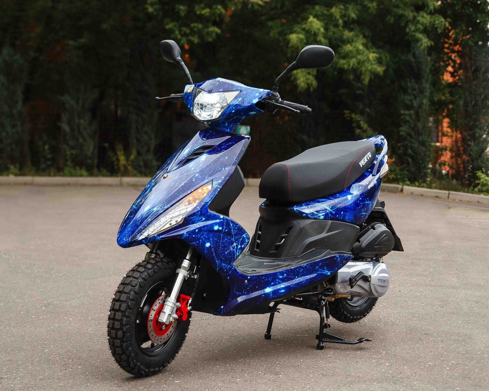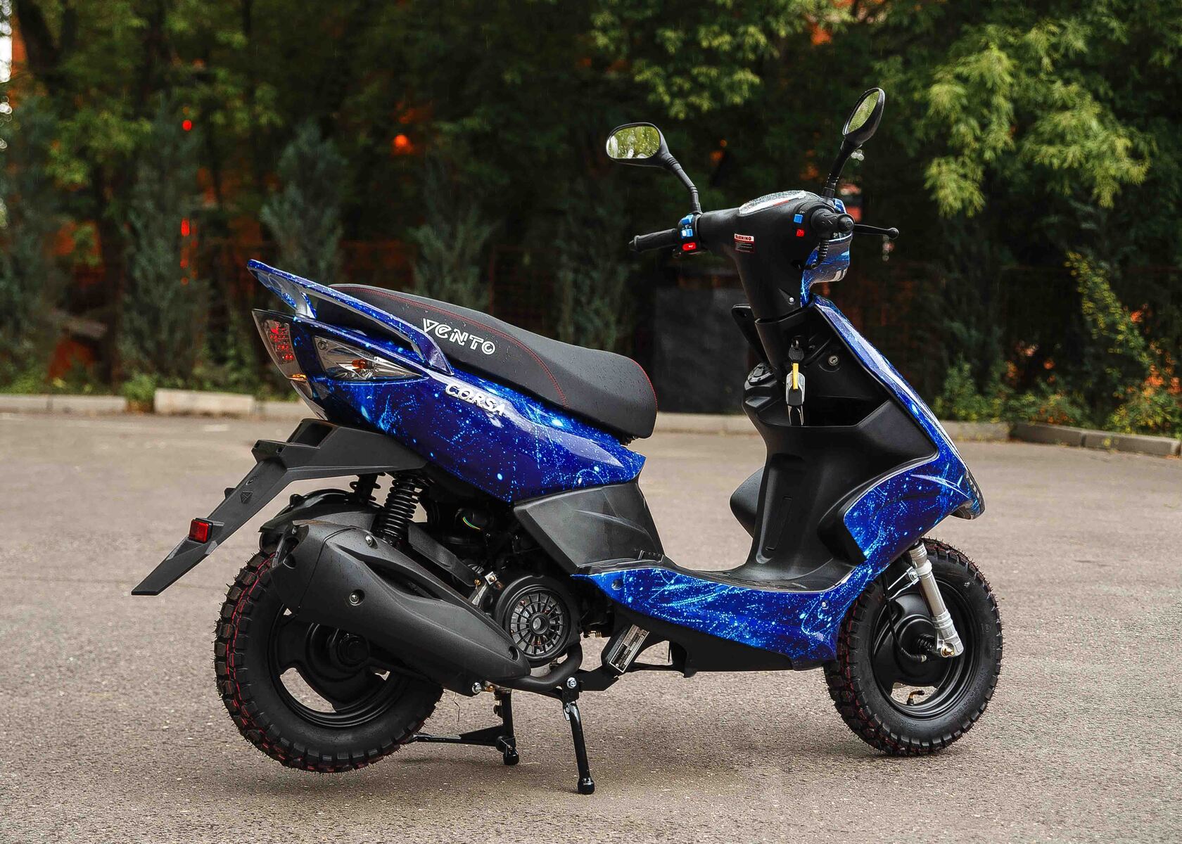 Скутер VENTO CORSA - Стильный и мощный скутер, который не оставит равнодушными любителей агрессивного и спортивного внешнего вида. Мощный 150 кубовый двигатель позволит уверенно держаться в городском потоке.